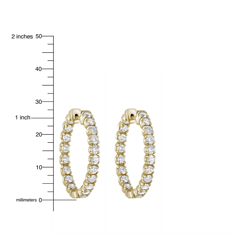 3 cttw Diamond Inside Out Hoop Earrings 14K Yellow Gold Round Prong Set 1 Inch