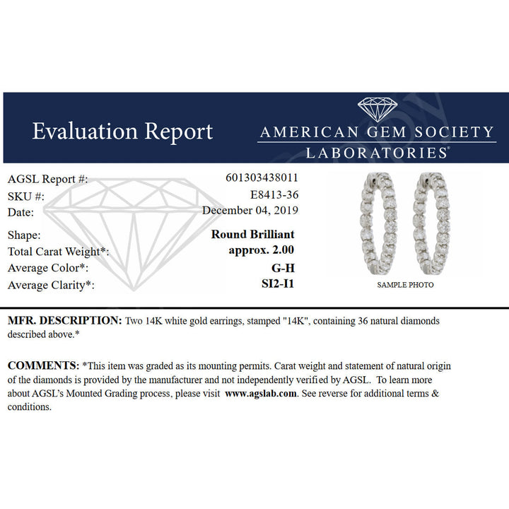2 cttw SI2-I1 Certified Diamond Inside Out Hoop Earrings 14K White Gold 1 Inch