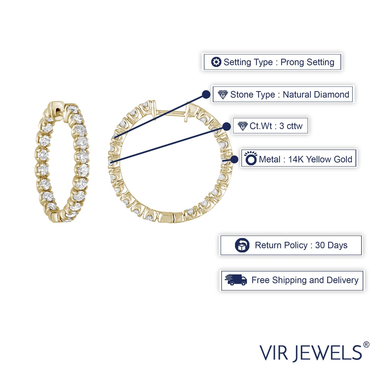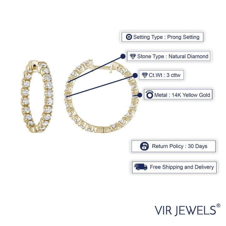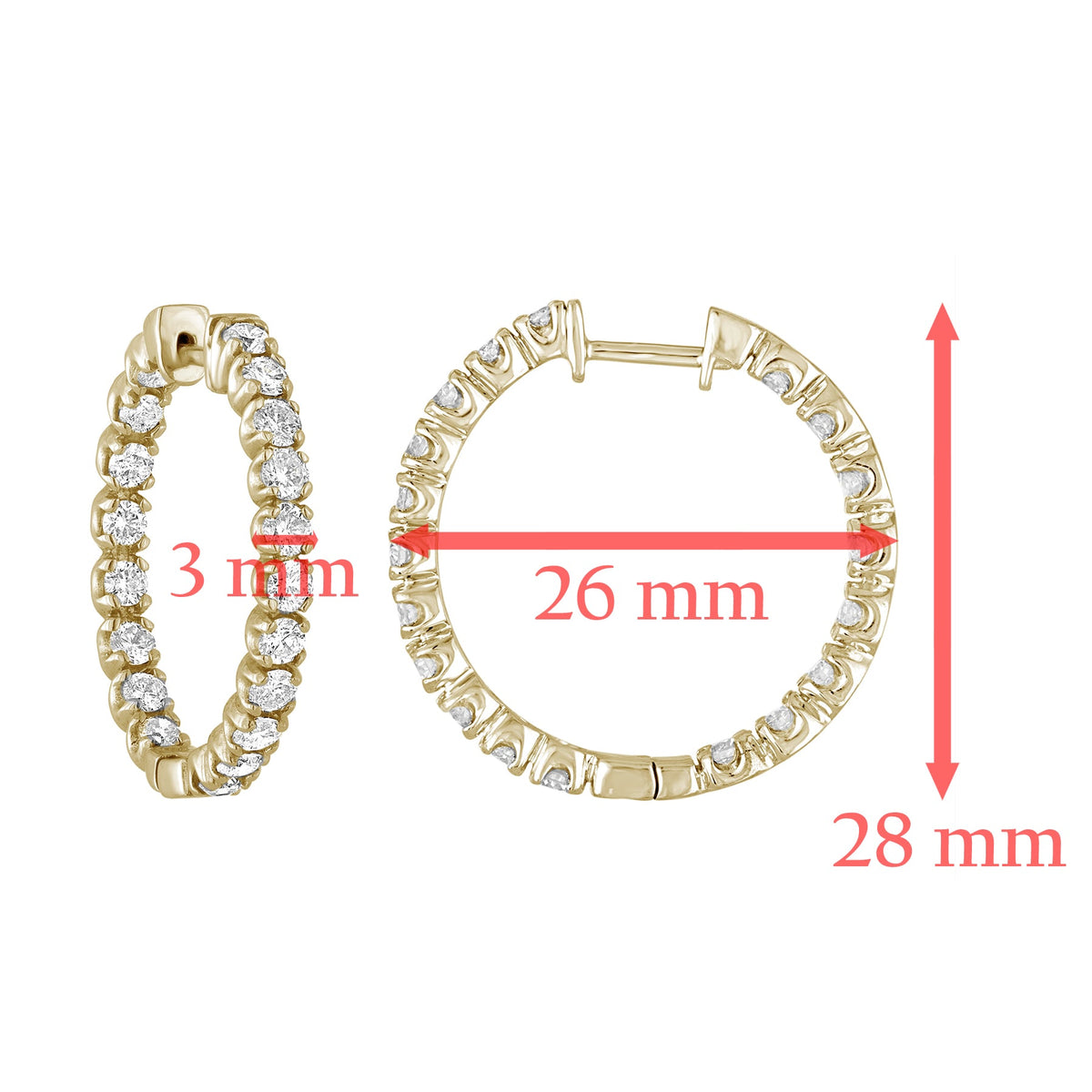 3 cttw SI2-I1 Diamond Inside Out Hoop Earrings 14K Yellow Gold Round 1 Inch