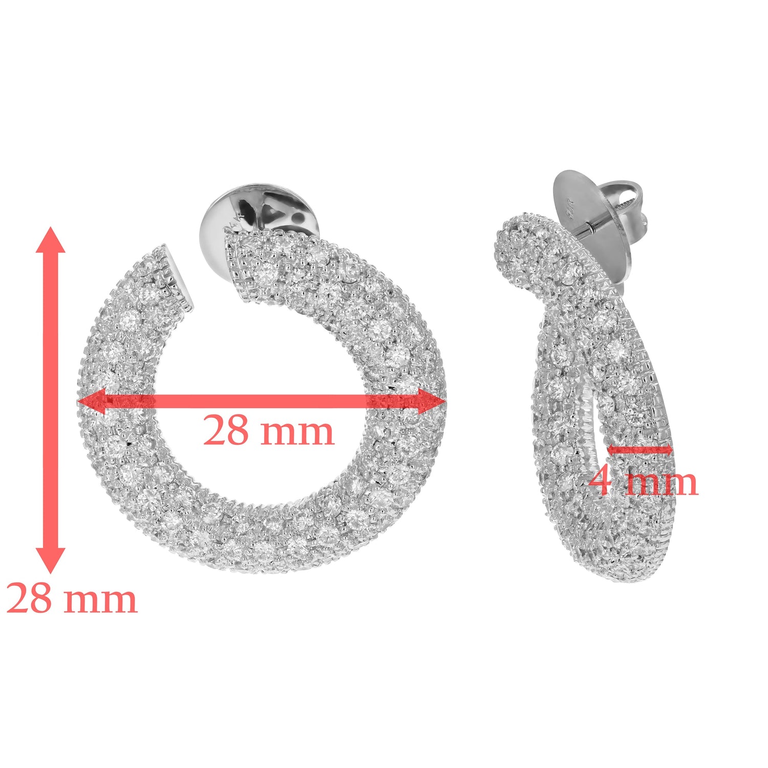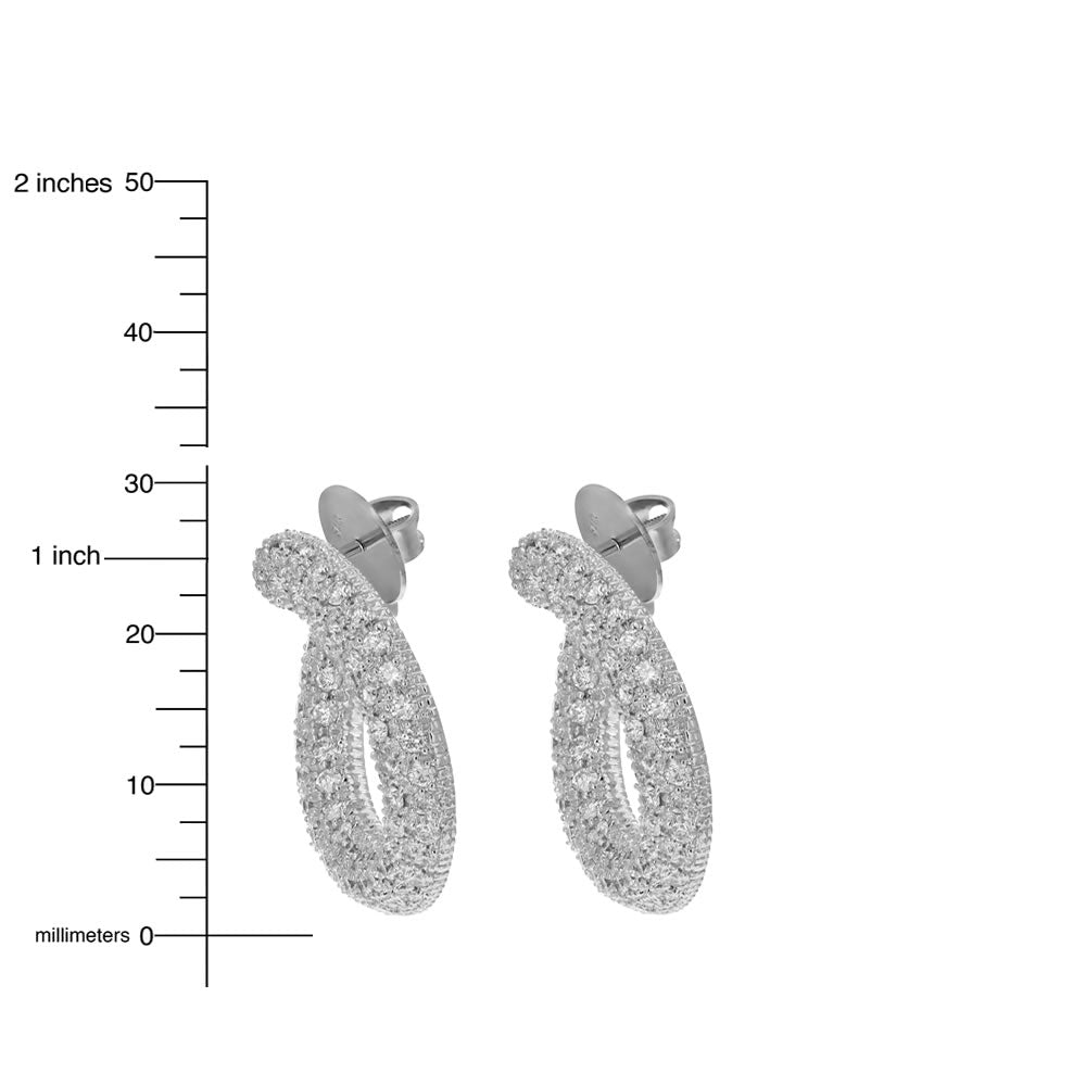 Handcrafted in 14K white gold with 160 natural round diamonds. Total diamond weight: 4 cttw. Clarity: SI2-I1. Color: G-H. Diamonds are set in a prong setting. Earring height: 1 inch. Secured with hidden snap posts. Certified for authenticity. April birthstone.