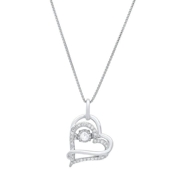 10k White Gold 'Golden Glimmer' Real Dancing Diamond Heart Pendant Necklace (1/5 cttw.), 18'
