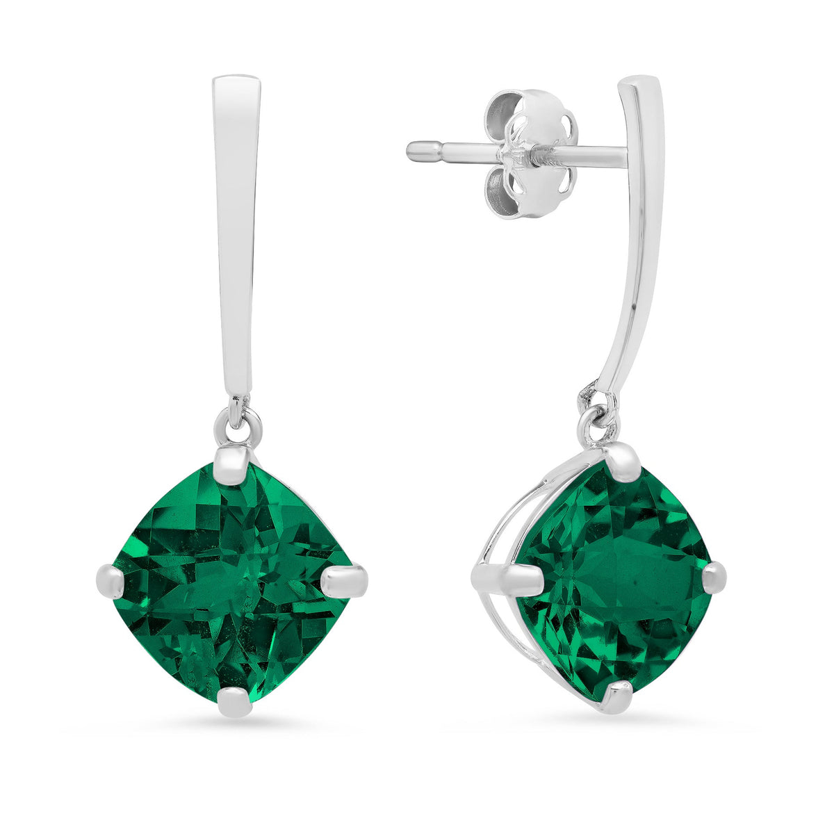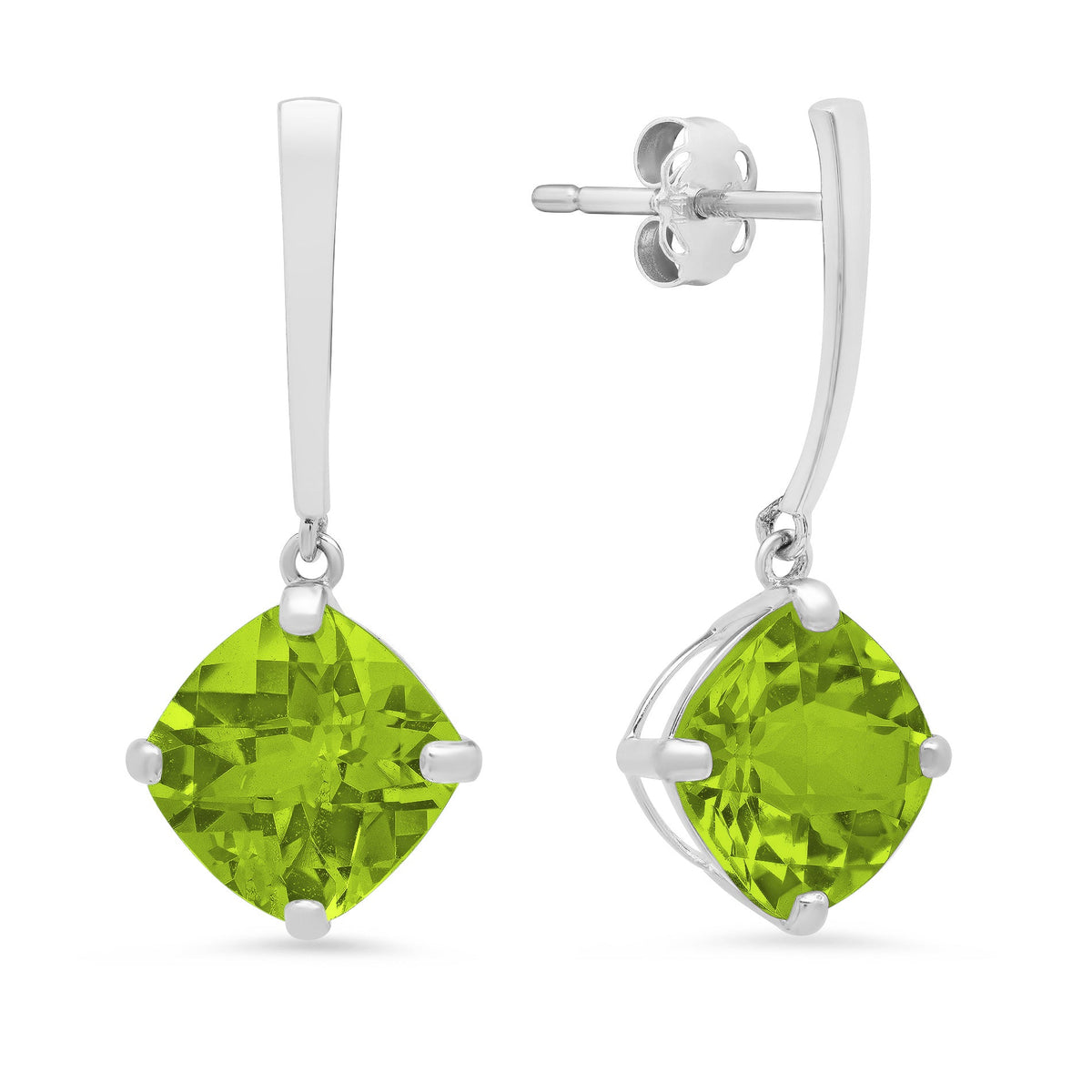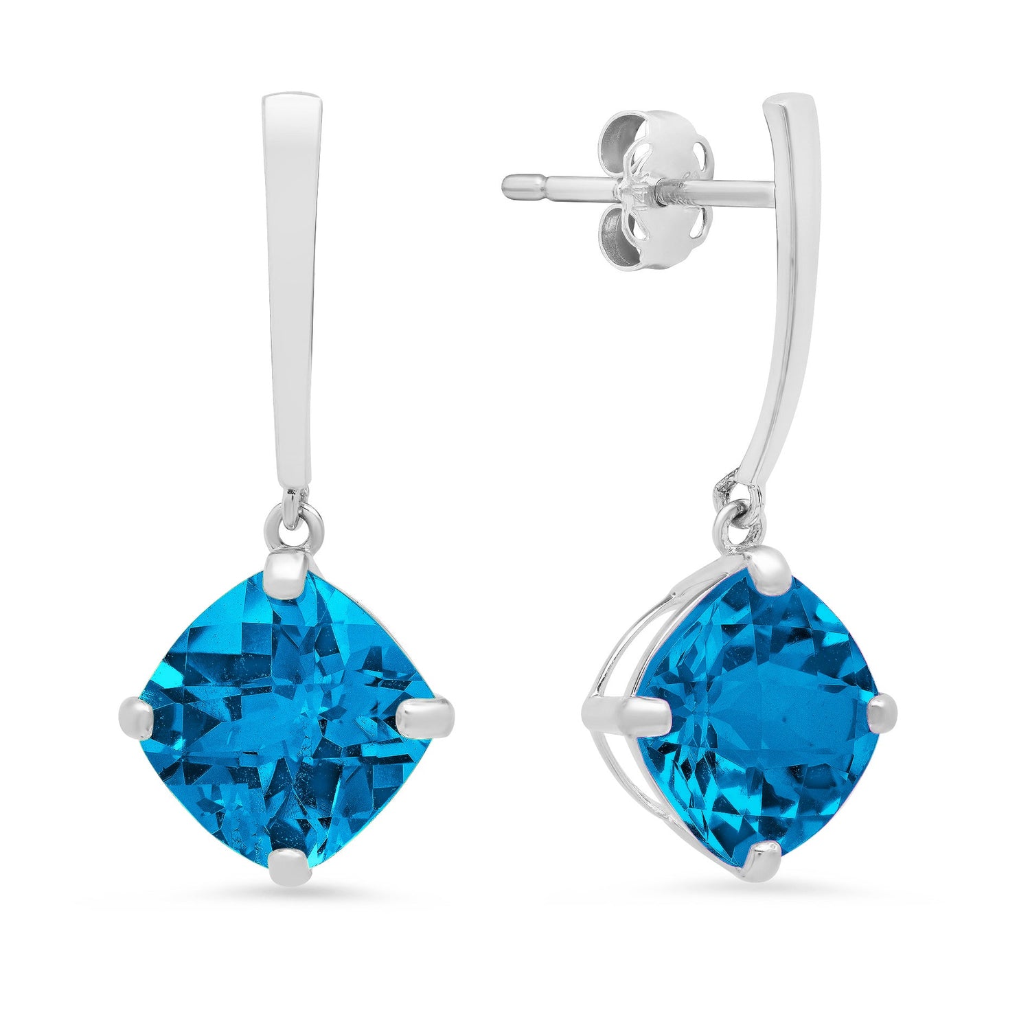 14k White Gold Solitaire Cushion-Cut Gemstone Drop Earrings (8mm)
