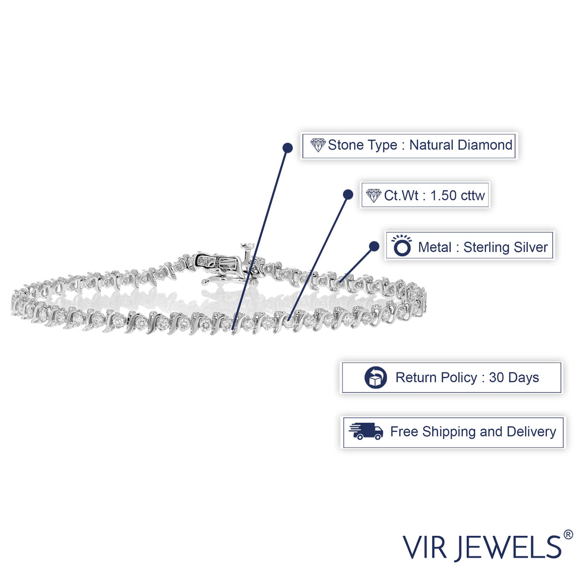 This 1.50 cttw Diamond Bracelet by Vir Jewels is a timeless expression of elegance and brilliance. Featuring 49 natural round diamonds set in a classic S-link design, this bracelet gracefully illuminates the wrist. The refined prong setting enhances the diamonds’ natural sparkle, while the secure box and tongue safety clasp ensures lasting comfort and security. Perfect for any occasion, this piece is a sophisticated staple for any jewelry collection.