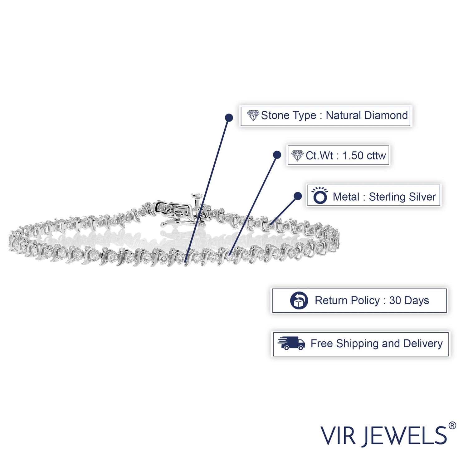 1.50 cttw Diamond Bracelet .925 Sterling Silver Classic S-Link Round 7 Inch