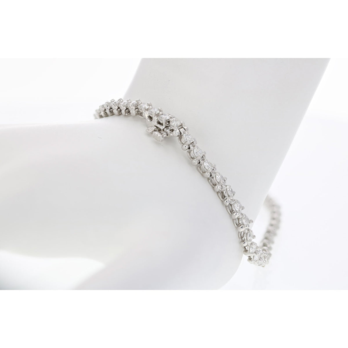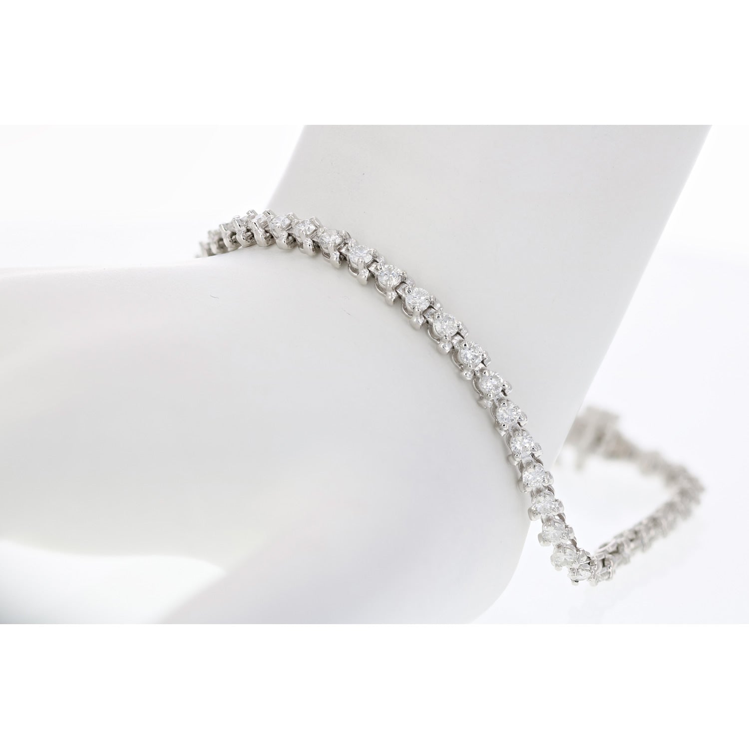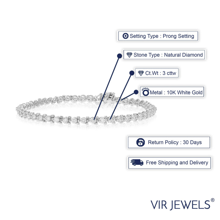 3 cttw SI2-I1 Diamond Bracelet 10K White Gold 3 Prong Classic Round 7 Inch