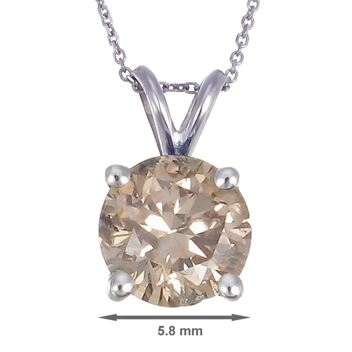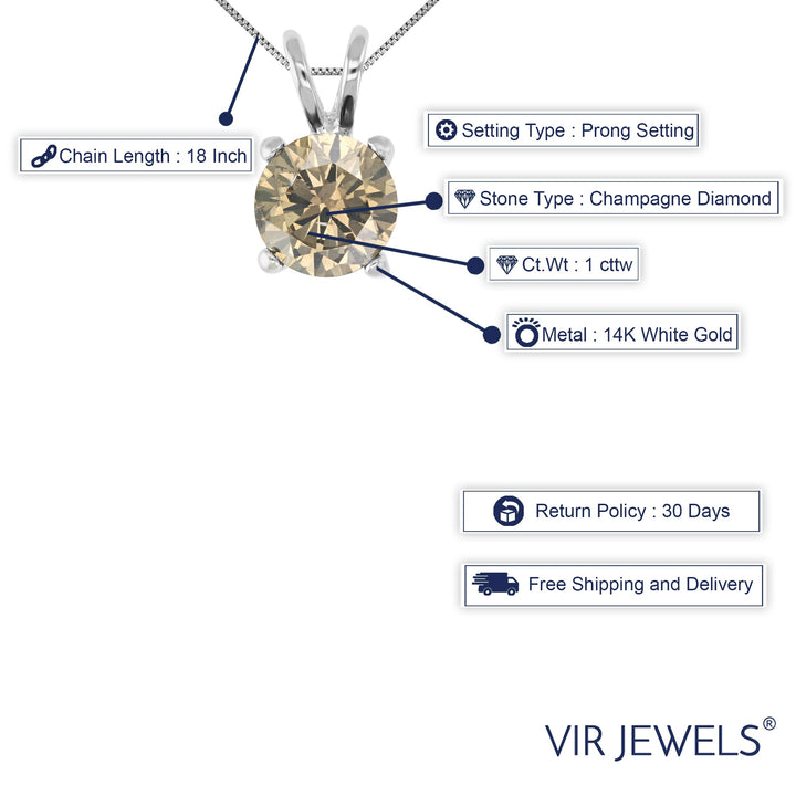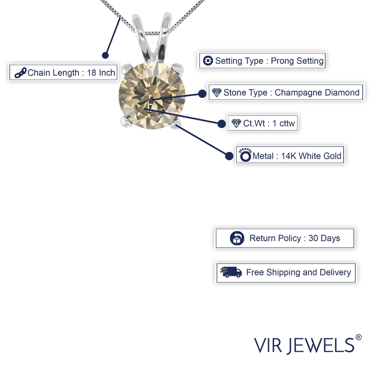 1 cttw Champagne Diamond Solitaire Pendant 14K White Gold Round with Chain
