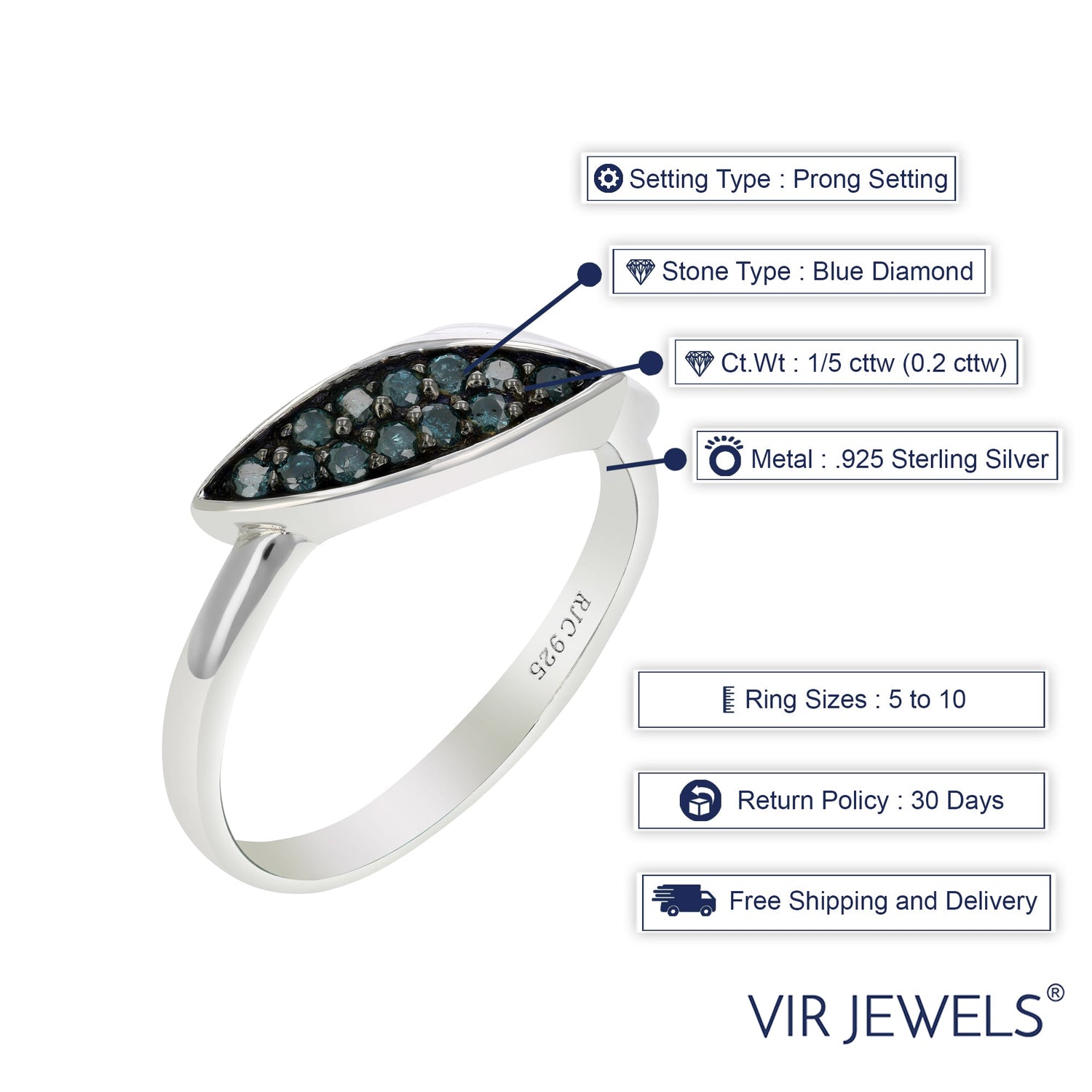 This 1/5 cttw Blue Diamond Ring by Vir Jewels is an elegant expression of refined beauty. Featuring a series of luminous blue diamonds, this sterling silver ring offers a delicate yet eye-catching design. The rhodium plating ensures lasting shine, while the prong-set diamonds add a touch of timeless sophistication.