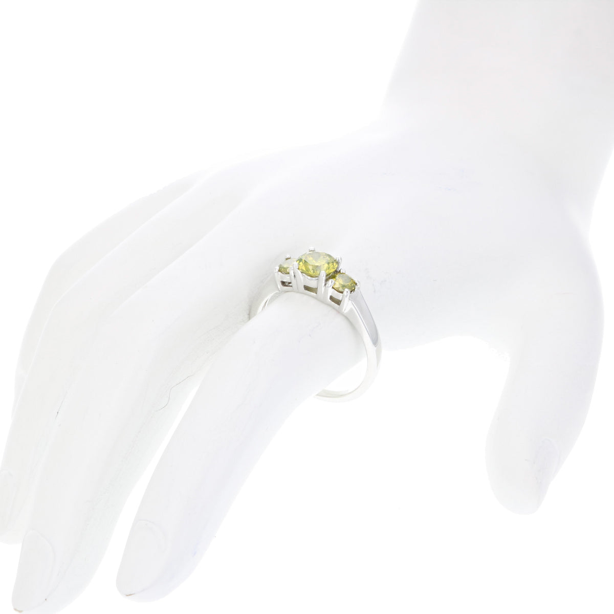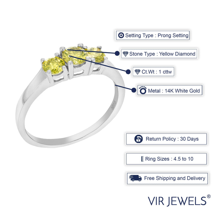 1 cttw 3 Stone Round Yellow Diamond Engagement Ring 14K White Gold Bridal