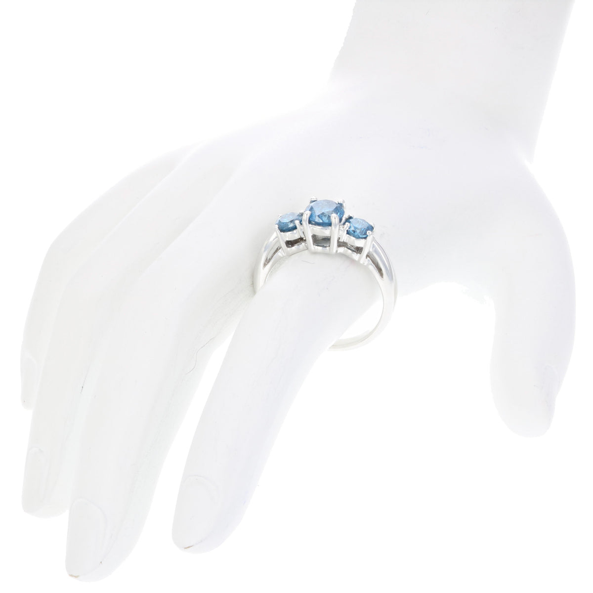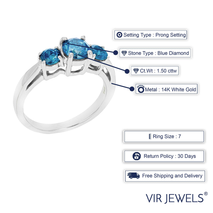 1.50 cttw 3 Stone Blue Diamond Engagement Ring in 14K White Gold Round