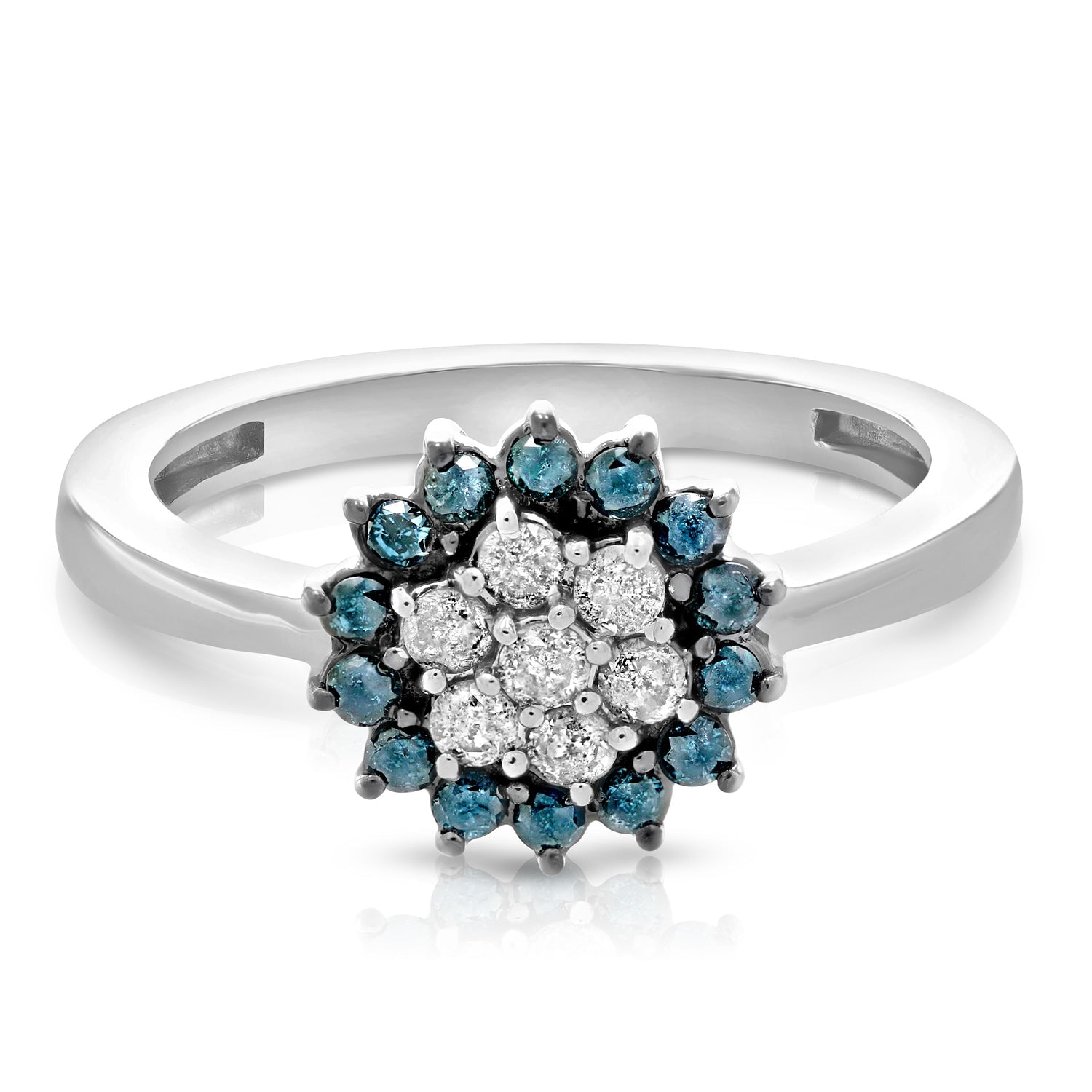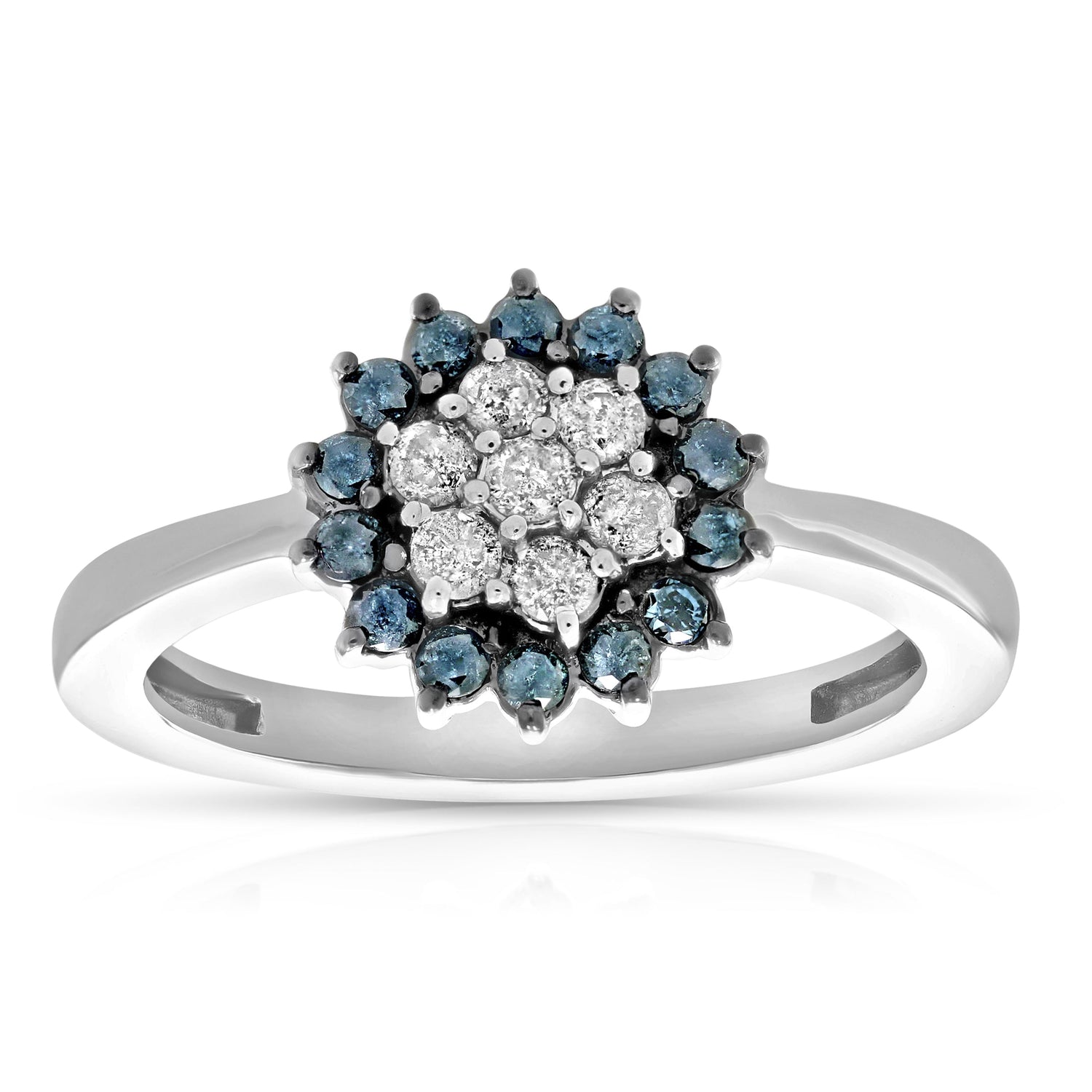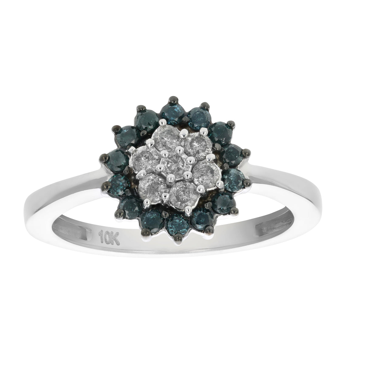 1/2 cttw Blue and White Diamond Cluster Composite Ring 10K White Gold