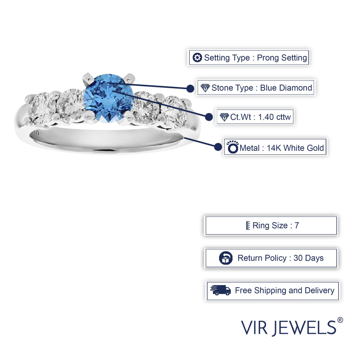 This 1.40 cttw Blue and White Diamond Engagement Ring by Vir Jewels is an exquisite symbol of love and commitment. Featuring a stunning array of blue and white diamonds, this elegant piece showcases the perfect balance of brilliance and color. The round-cut diamonds are set in a classic 14K white gold band, enhancing the overall elegance. Ideal for those who want a timeless, sophisticated engagement ring that speaks volumes about lasting love. Available in multiple sizes.
