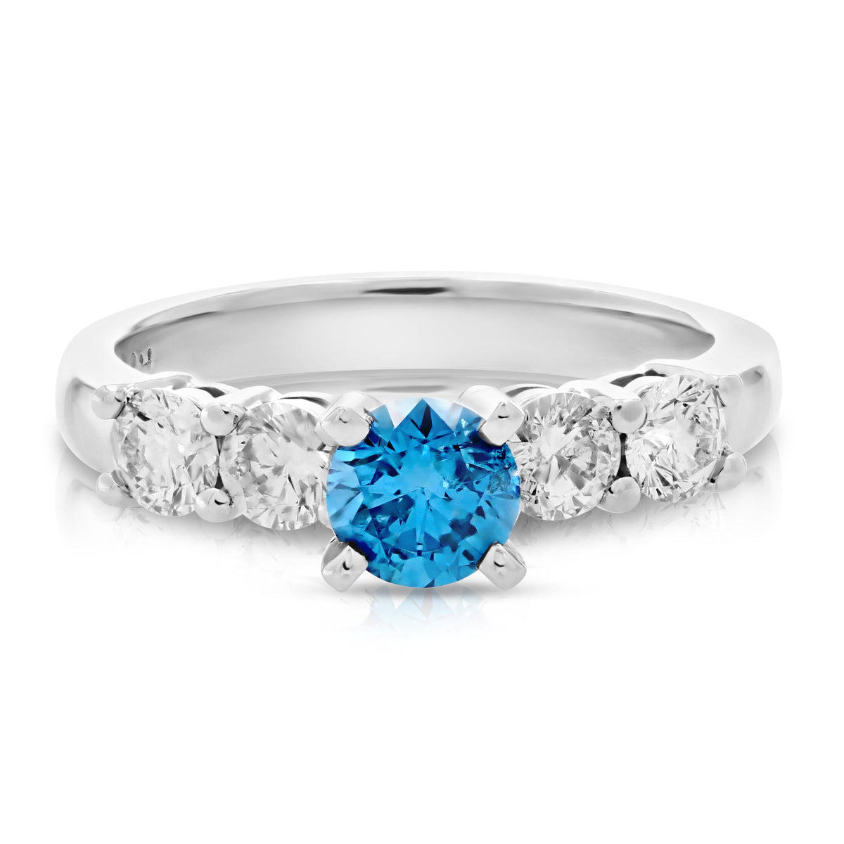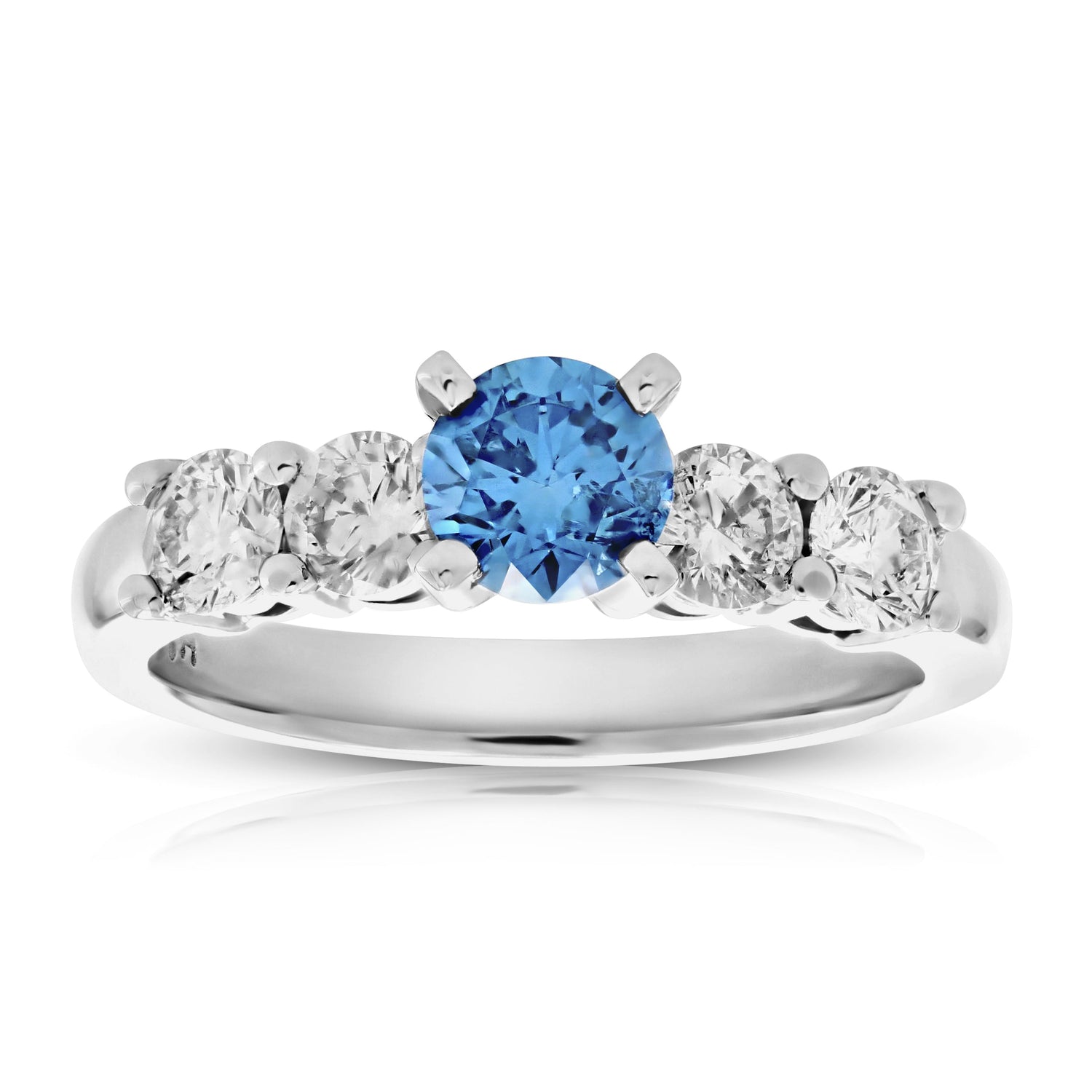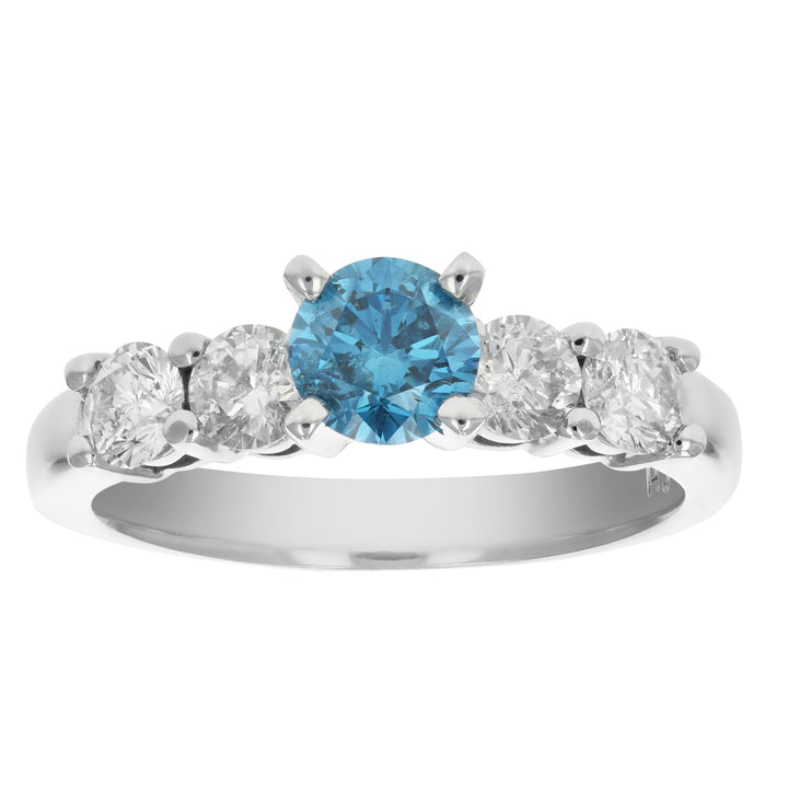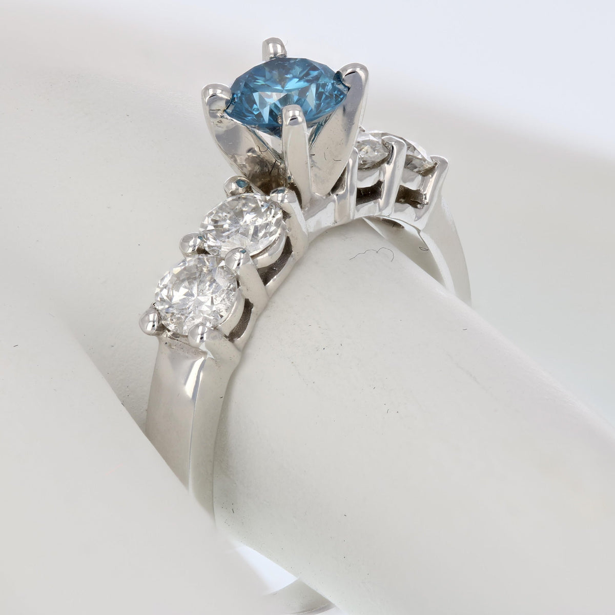 1.40 cttw Blue and White Diamond Engagement Ring 14K White Gold Bridal