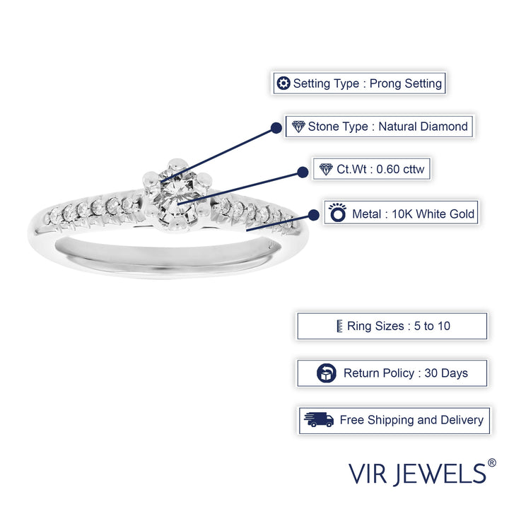 0.60 cttw Diamond Engagement Ring 10K White Gold Bridal Wedding