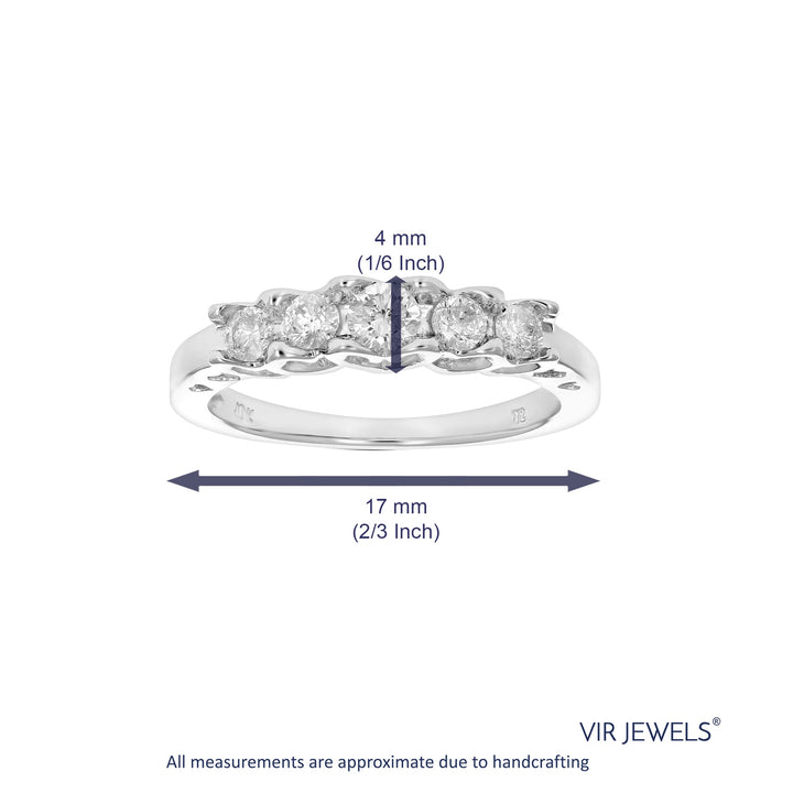 This 1/2 cttw 5 Stone Diamond Engagement Ring by Vir Jewels is a timeless and elegant piece that adds a touch of sophistication to any occasion. The five natural round diamonds are set in a 10K white gold band, creating a dazzling sparkle that is perfect for engagements or special milestones. The simple yet elegant design ensures this ring will remain a cherished piece for years to come. Available in multiple sizes.