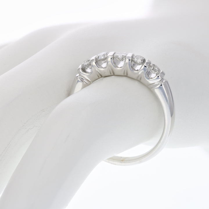 Handcrafted in 14K white gold. Features five natural round diamonds totaling 1.00 cttw.