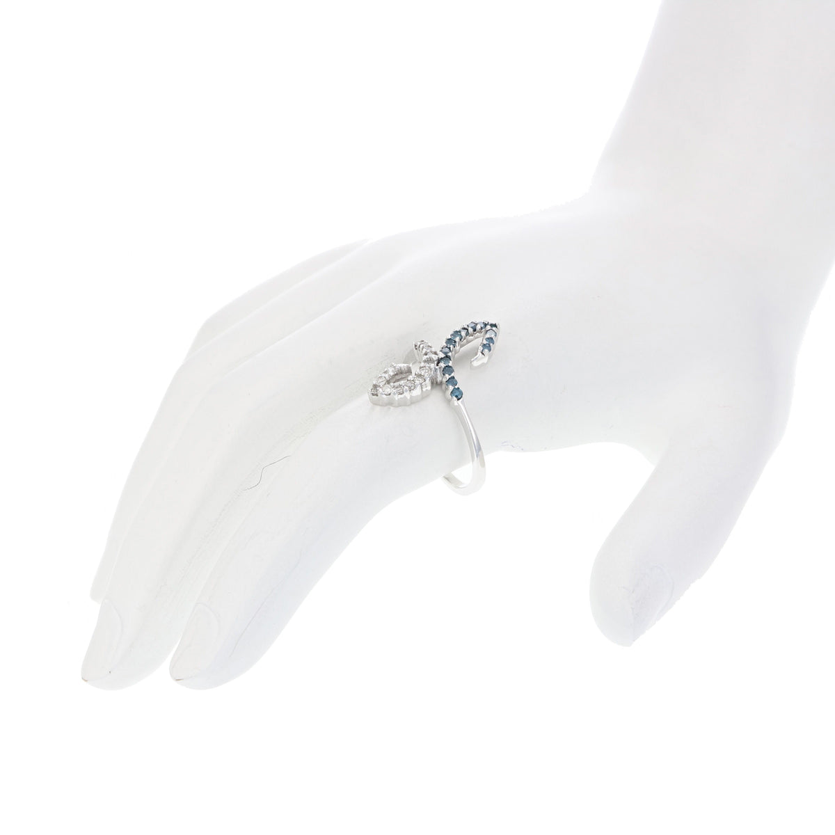 Handcrafted in 10K white gold. Features natural blue diamonds totaling 0.40 cttw. Diamonds have a J-K color grade and I1-I2 clarity.