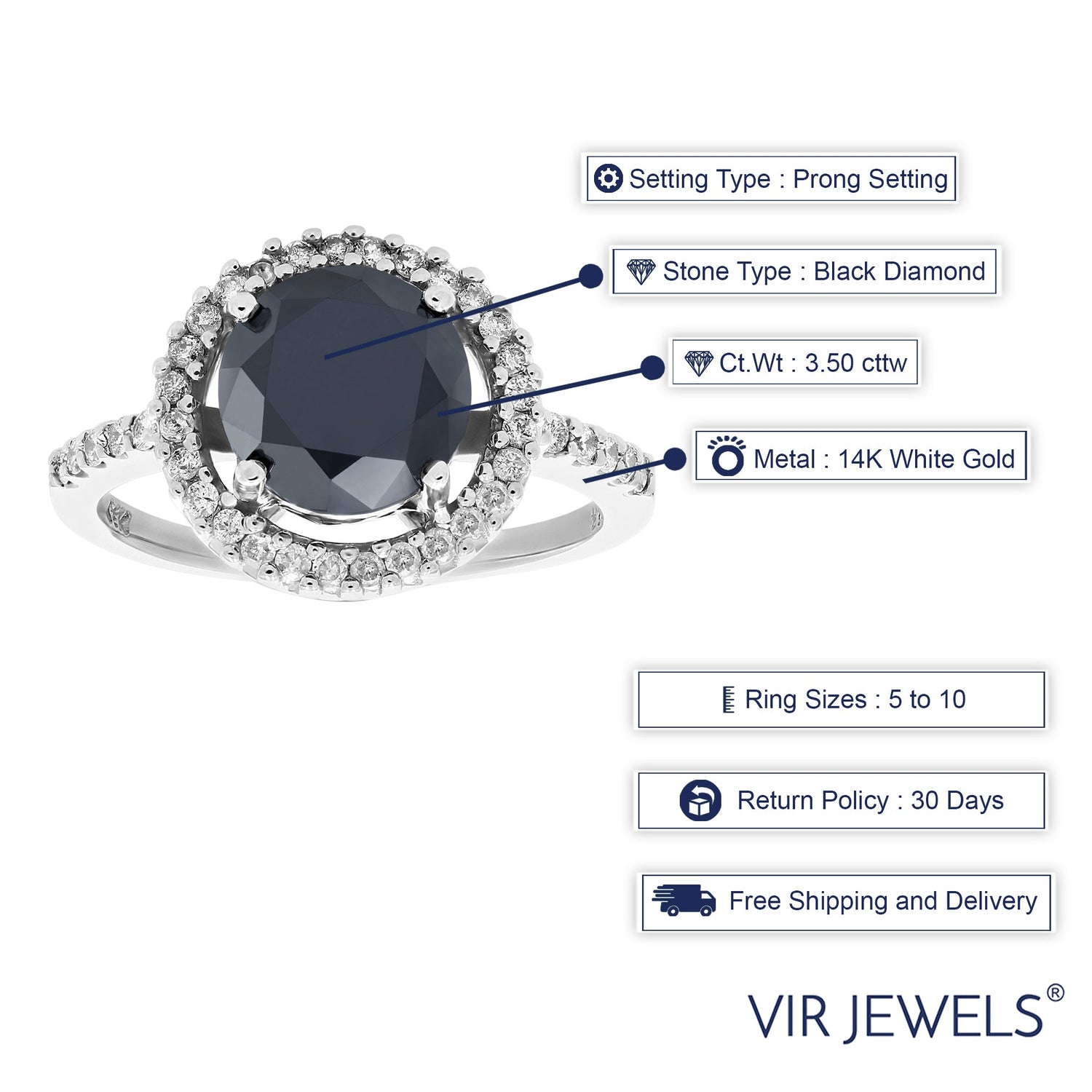 This 3.50 cttw Black Diamond Engagement Ring by Vir Jewels is an elegant and bold symbol of love. With 36 sparkling black diamonds set in 14K white gold, this stunning piece features natural diamonds that create a dramatic yet sophisticated look. Perfect for those who appreciate contemporary design, this engagement ring is a statement of lasting commitment. Available in multiple sizes.