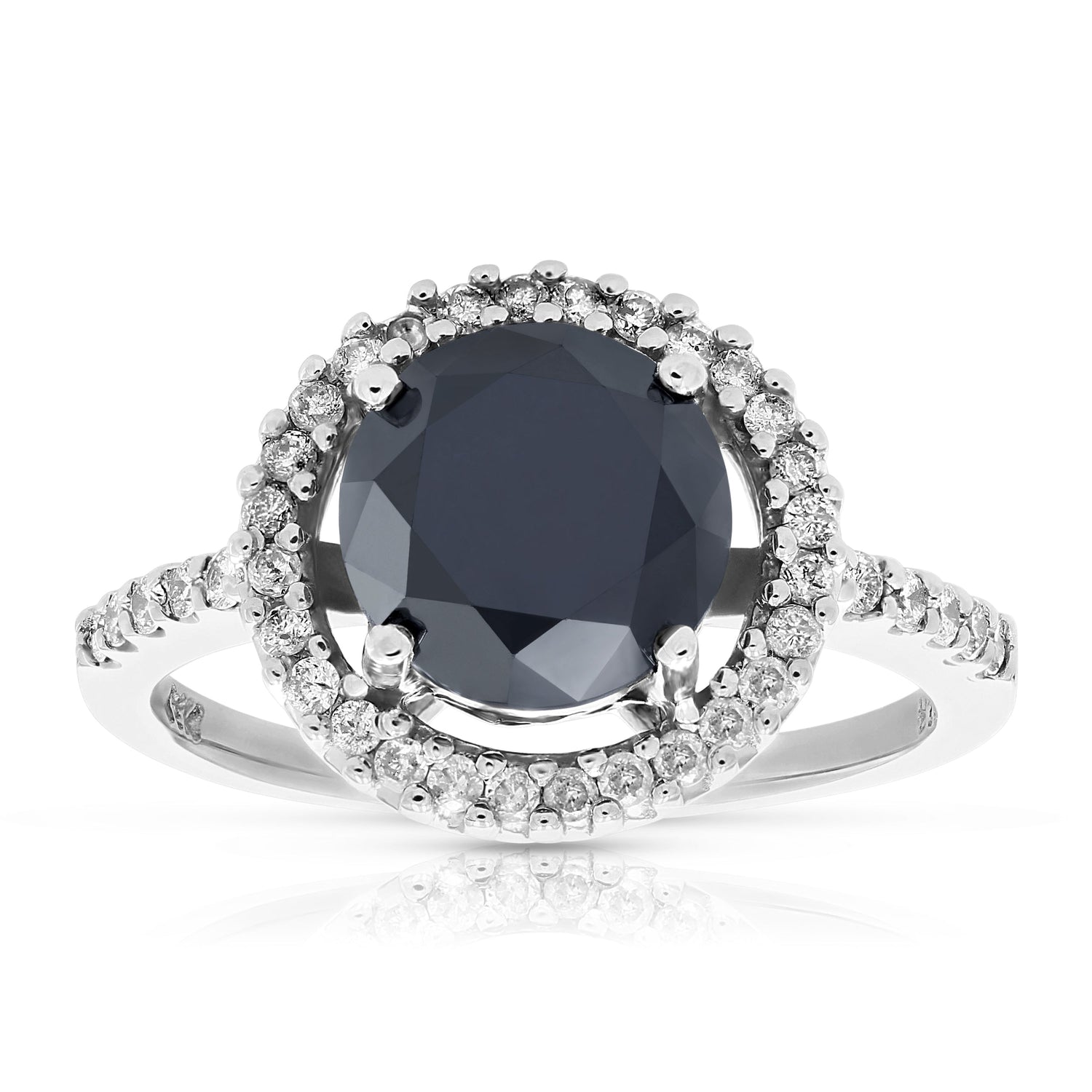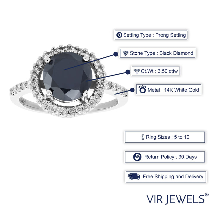 3.50 cttw Black Diamond Engagement Ring Bridal Wedding 14K White Gold
