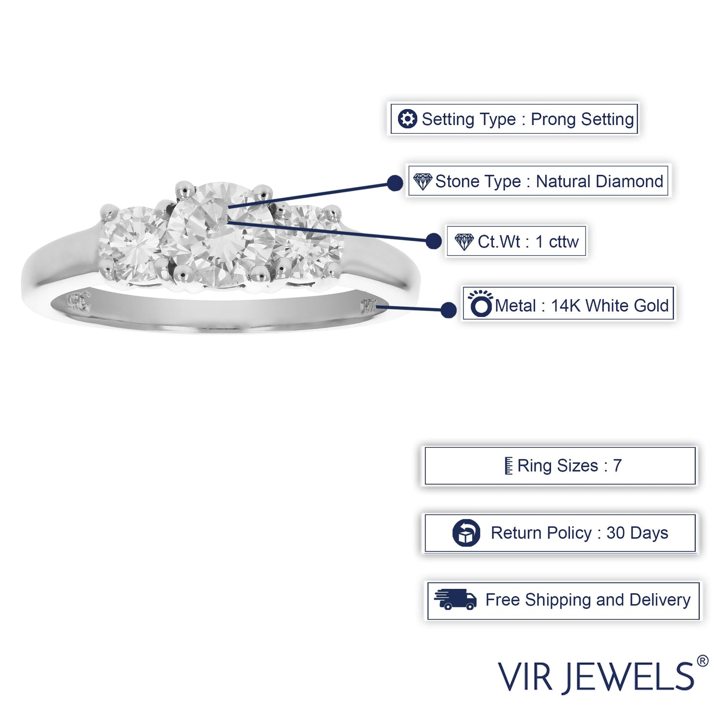 1 cttw Diamond 3 Stone Engagement Ring 14K White Gold Wedding Bridal