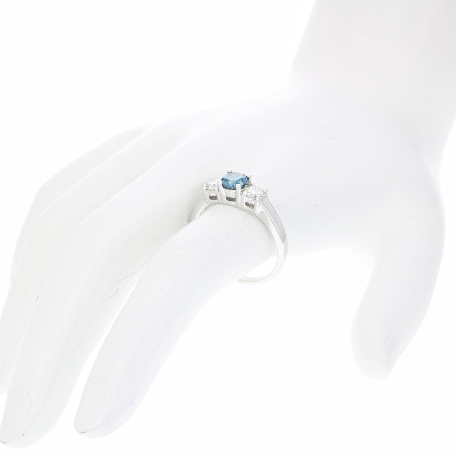1 cttw Blue and White Diamond 3 Stone Engagement Ring 10K White Gold