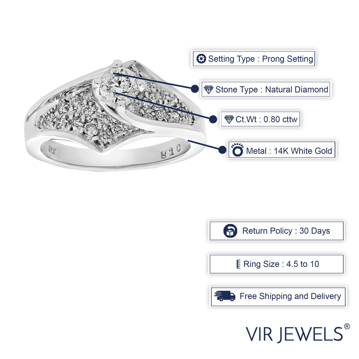 This 0.80 cttw Diamond Engagement Ring by Vir Jewels is a refined and elegant choice for those seeking timeless beauty. The sparkling natural diamonds are set in polished 14K white gold, creating a perfect symbol of commitment and love. Ideal for engagements, this ring combines sophistication with classic charm. Available in multiple sizes.