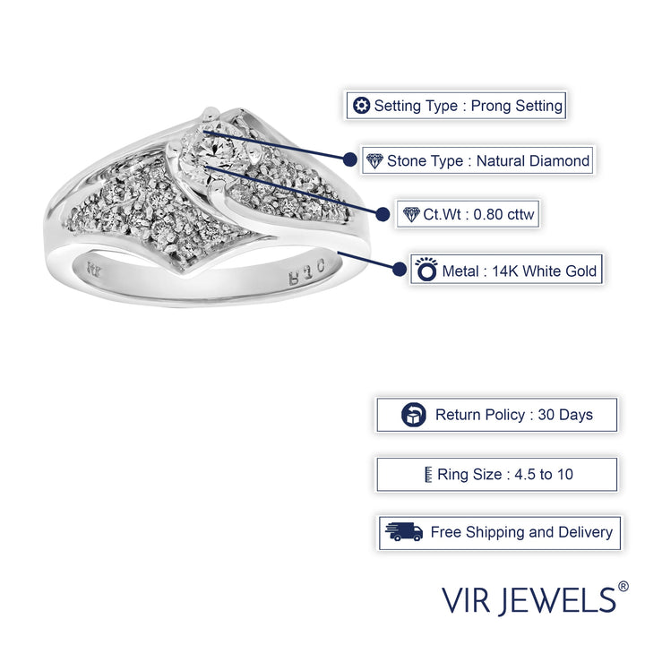 0.80 cttw Diamond Engagement Ring 14K White Gold Wedding Bridal