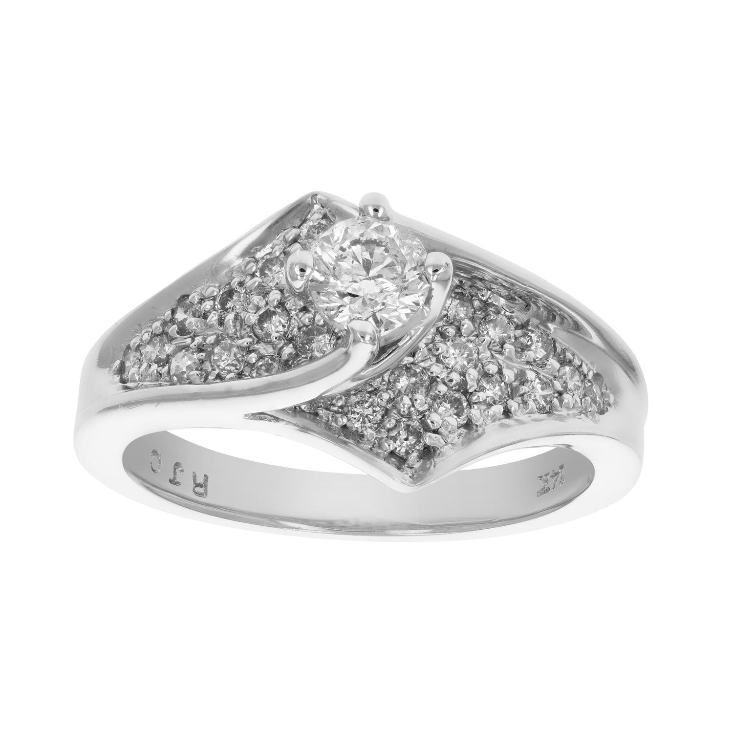 Handcrafted in 14K white gold. Features natural diamonds totaling 0.80 cttw.