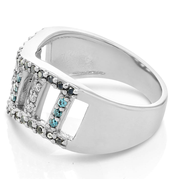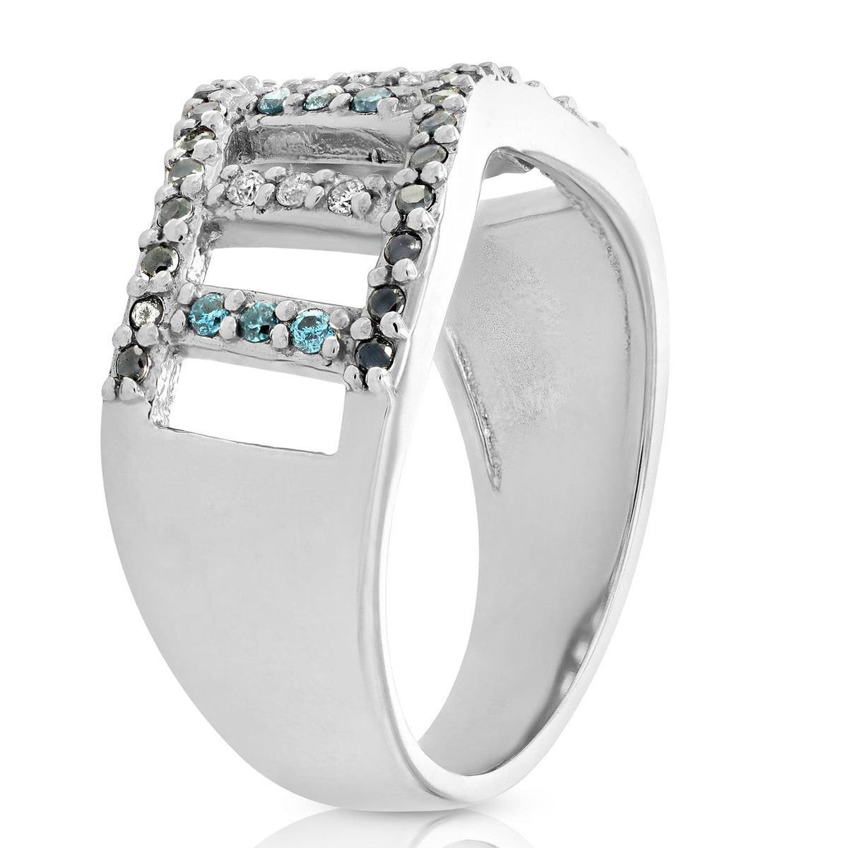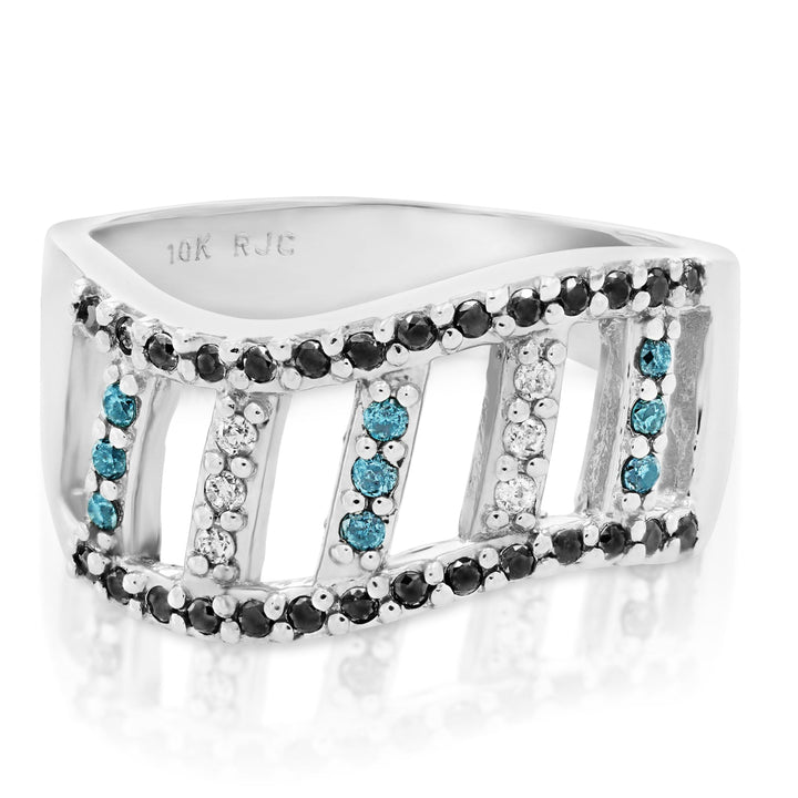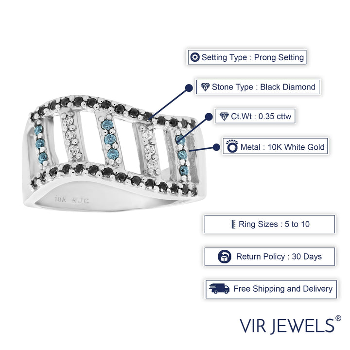0.35 cttw Black, Blue and White Diamond Wedding Band Ring 10K White Gold
