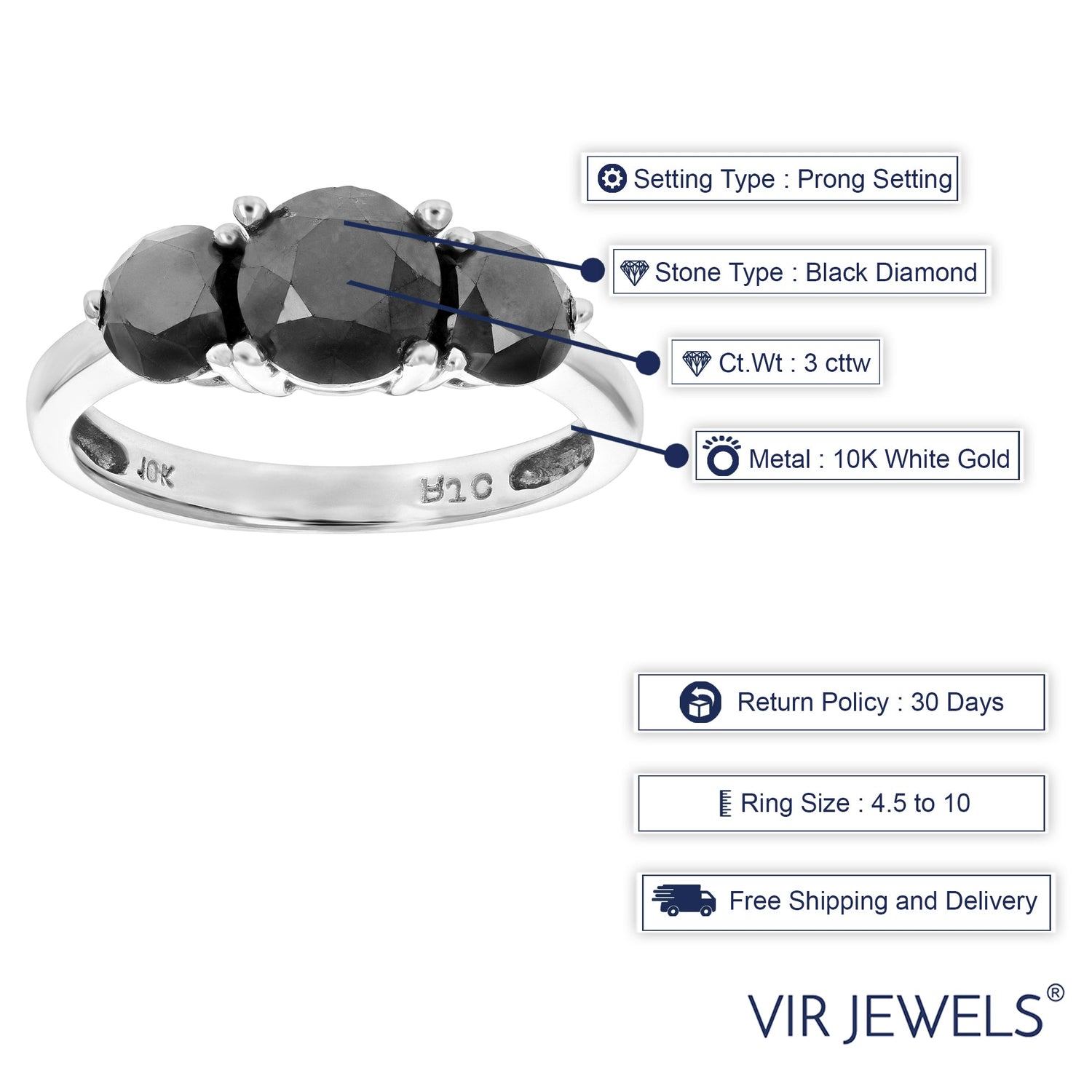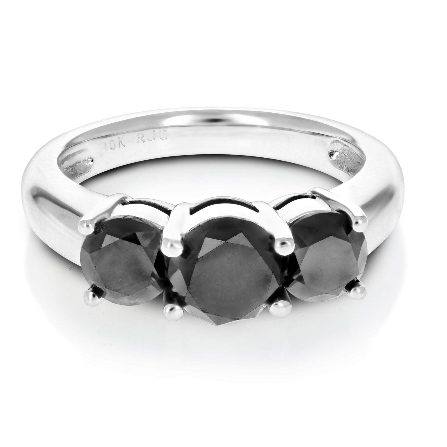 3 cttw 3 Stone Black Diamond Engagement Ring 10K White Gold Wedding