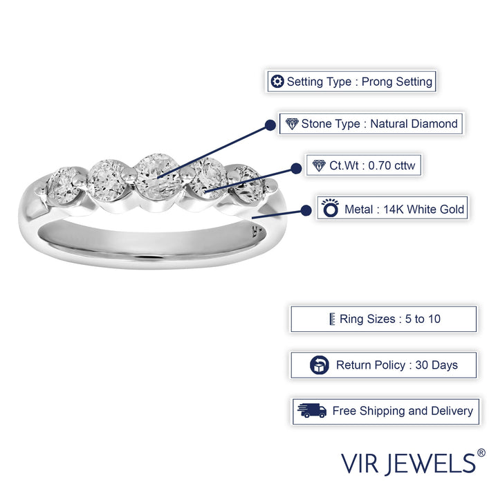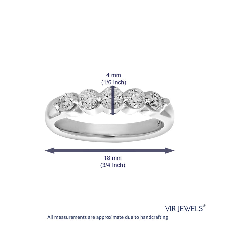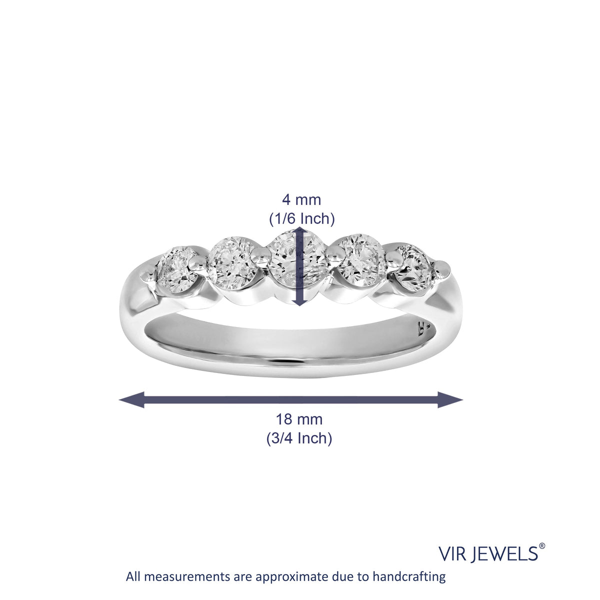This 0.70 cttw Diamond 5 Stone Ring by Vir Jewels is a stunning choice for those seeking a refined yet bold engagement ring. The five sparkling diamonds, set in 14K white gold, create an elegant flow that represents harmony and eternal commitment. The design is perfect for someone looking for a luxurious yet classic style.