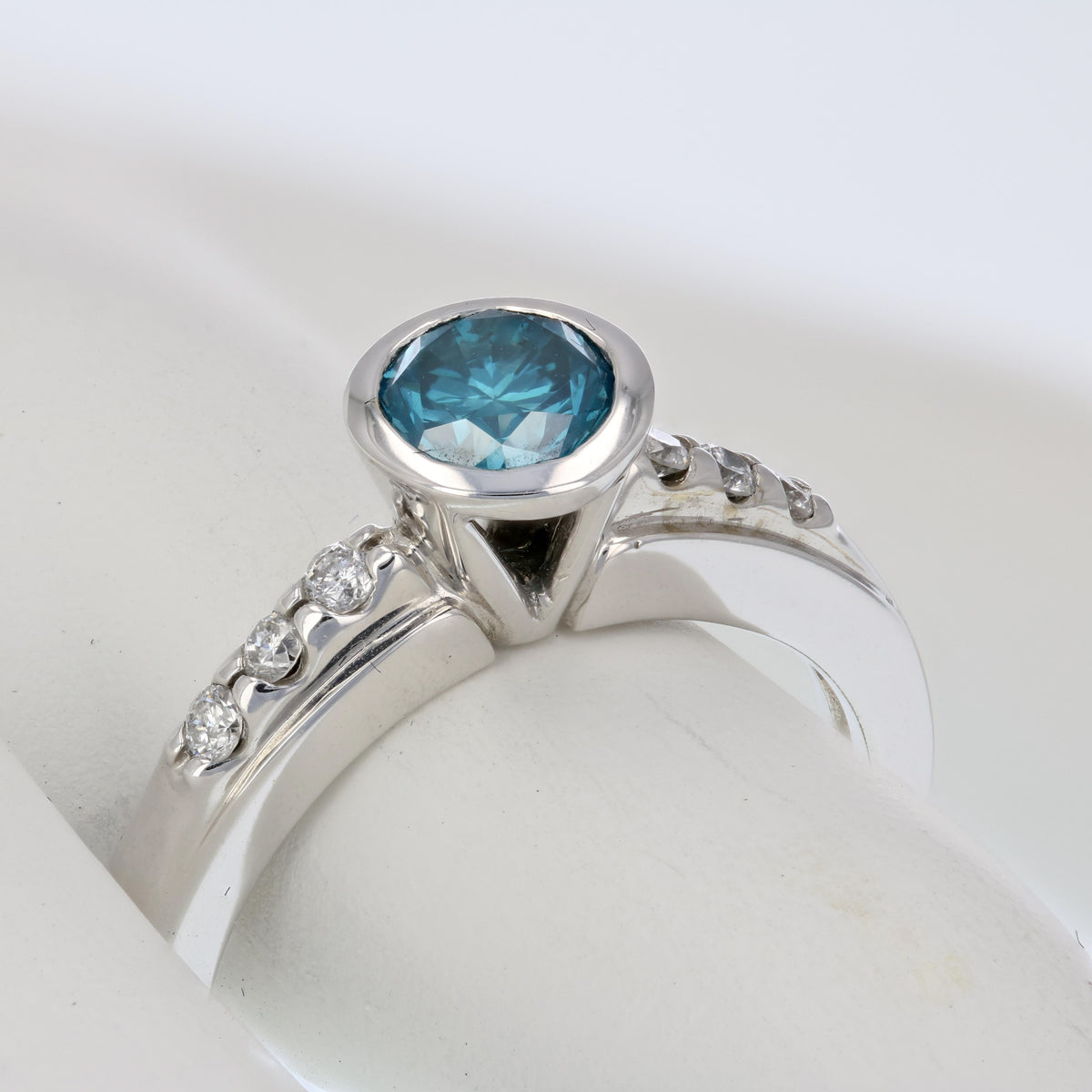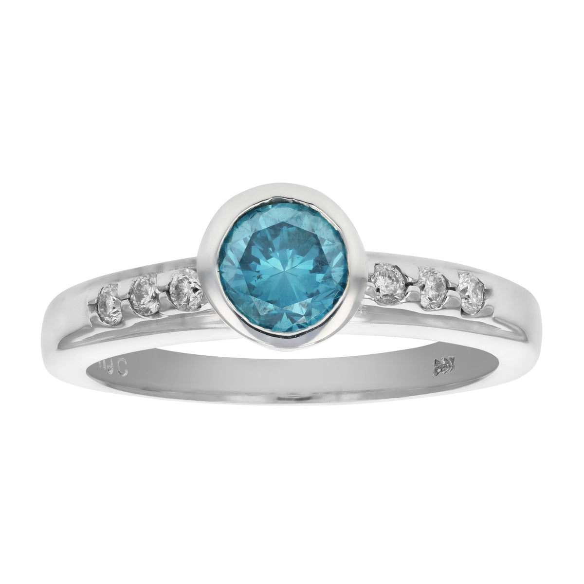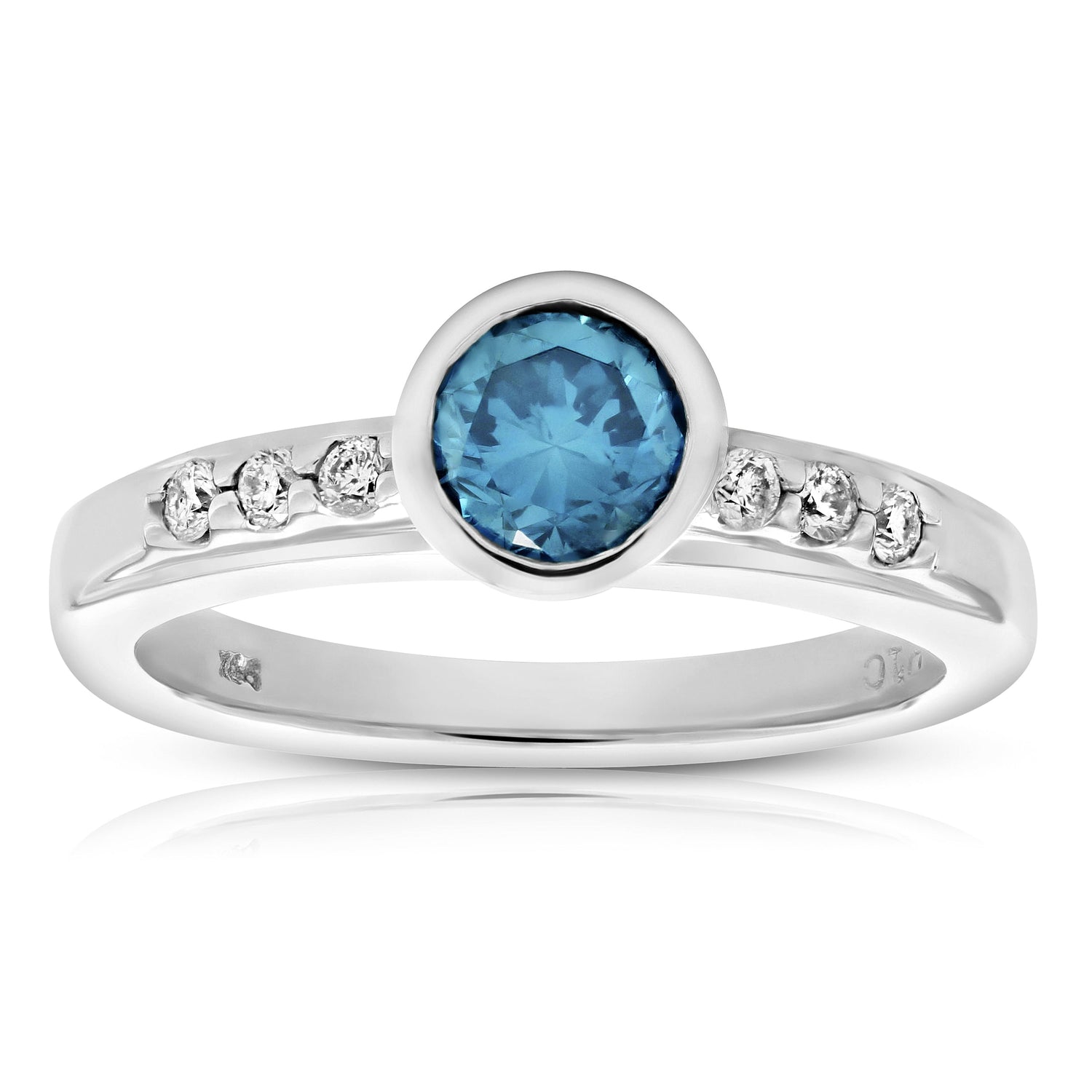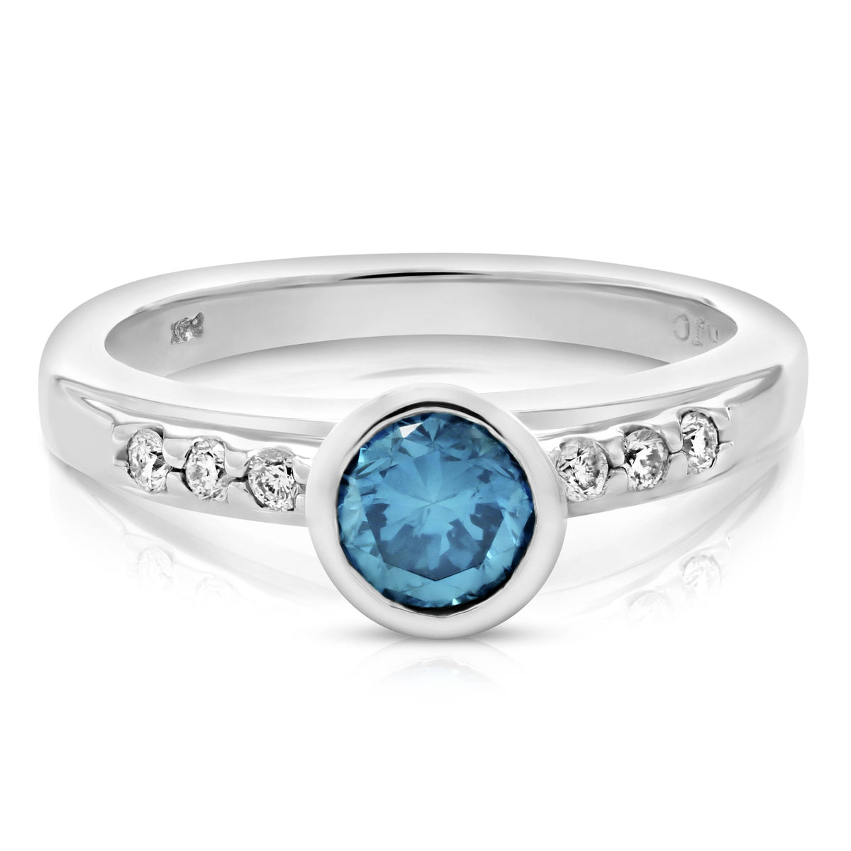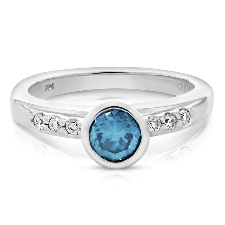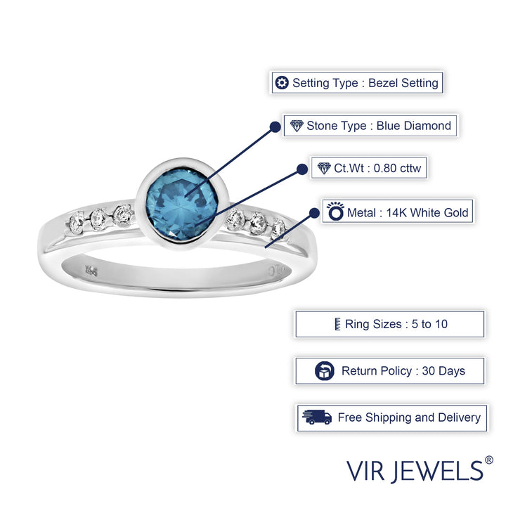 0.80 cttw Blue and White Diamond Engagement Ring 14K White Gold