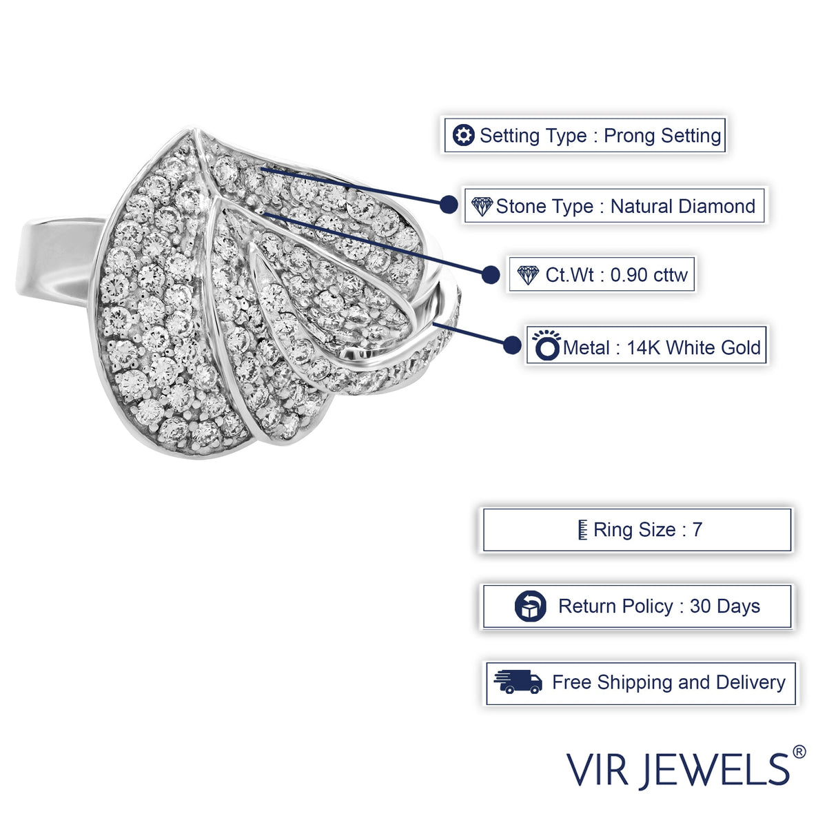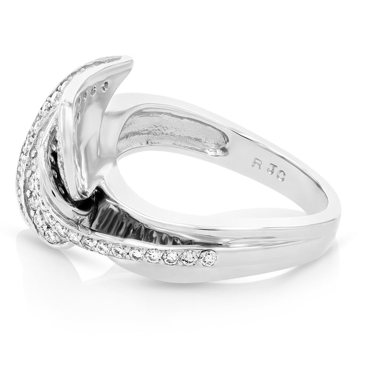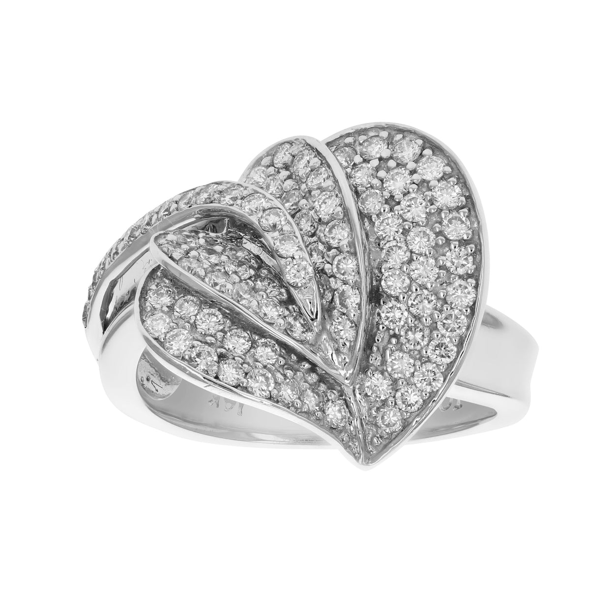 0.90 cttw Diamond Heart Leaf Fashion Ring 14K White Gold Round