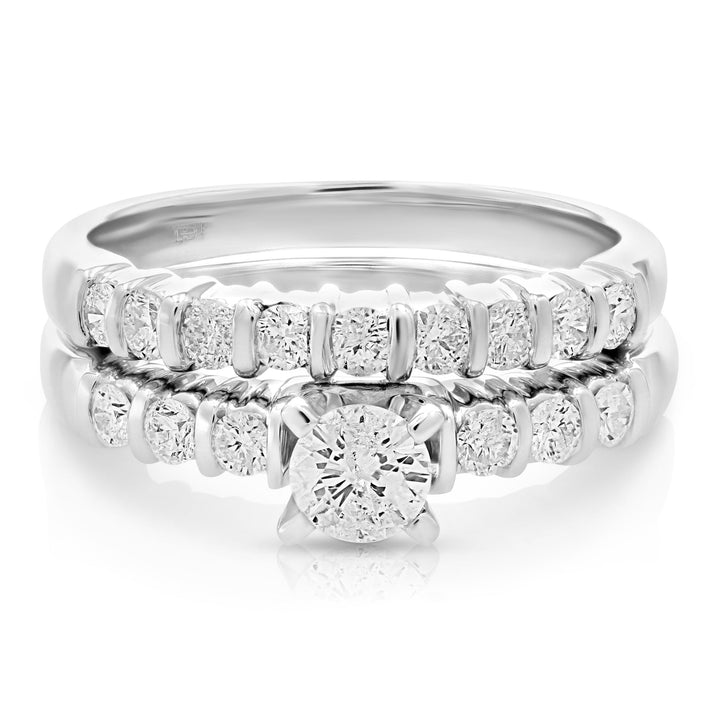 1 cttw Diamond Channel Set Wedding Engagement Ring Set 14K White Gold