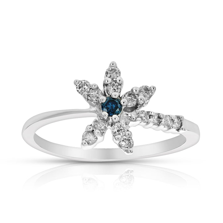 Handcrafted in 10K white gold with 0.35 cttw natural blue and white diamonds. Diamond color: Blue, White (J-K). Diamond clarity: I1-I2.