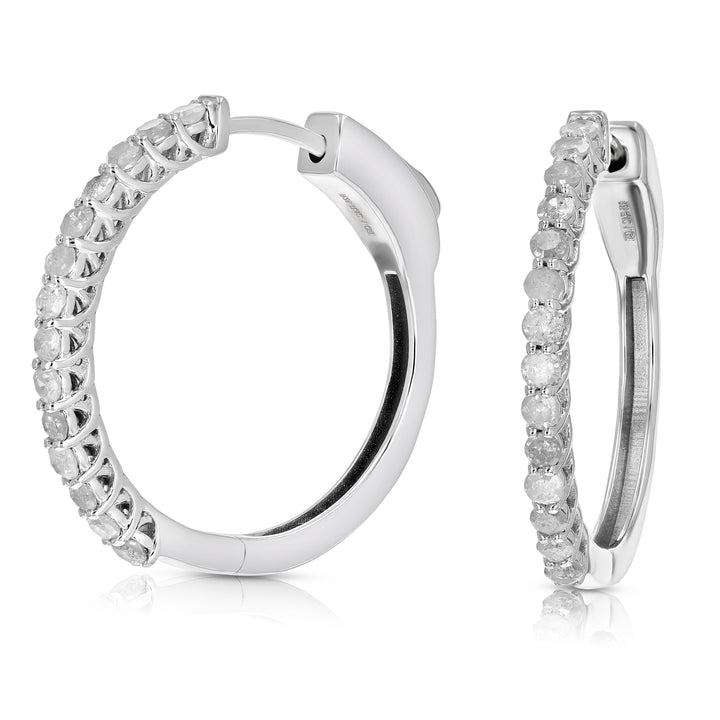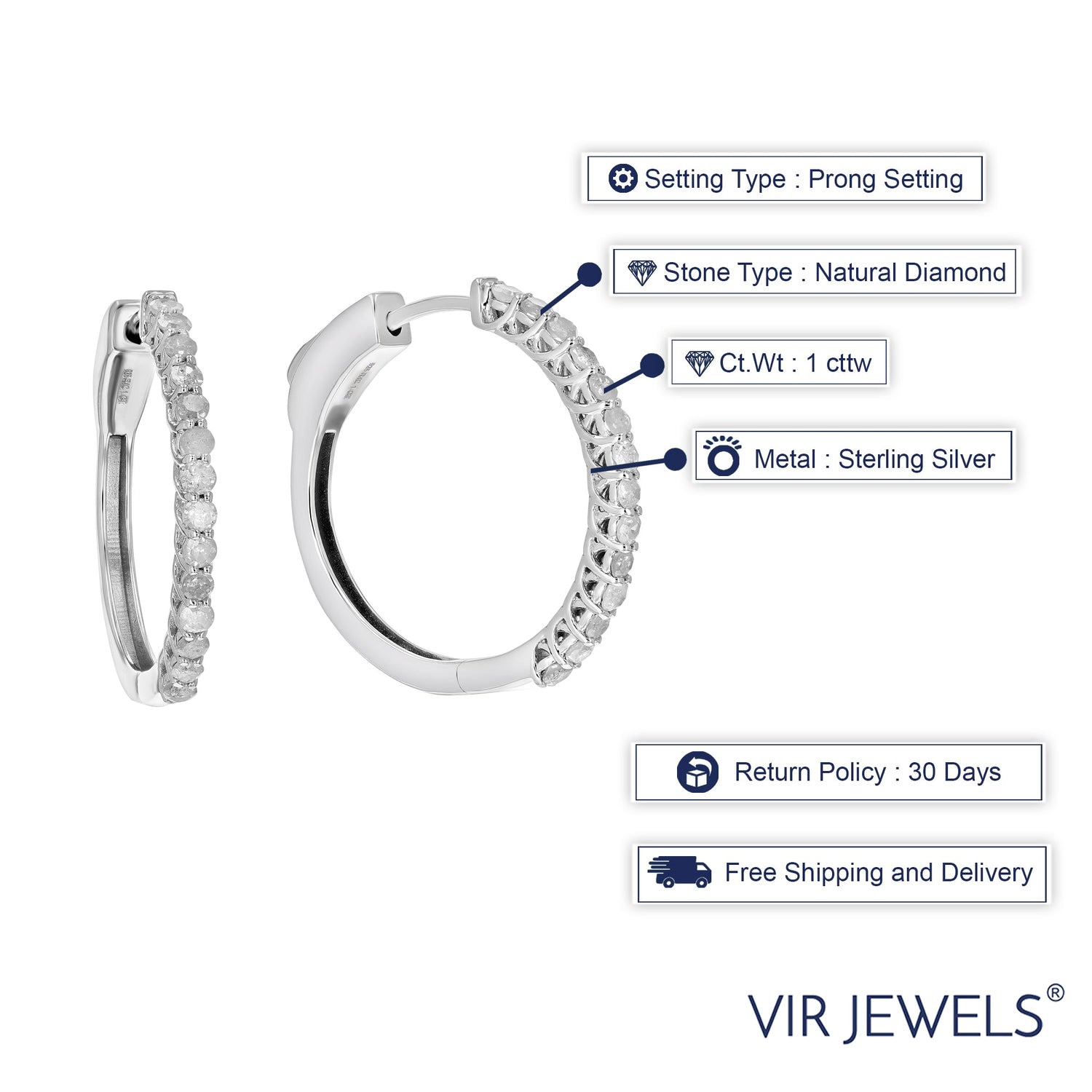 These 1 cttw Diamond Hoop Earrings by Vir Jewels feature 28 dazzling natural round diamonds set in a prong setting. The prong setting enhances the diamonds’ brilliance, making them the perfect accessory for a refined, elegant look. With a height of 1 inch, these earrings are perfect for both everyday wear and special occasions.