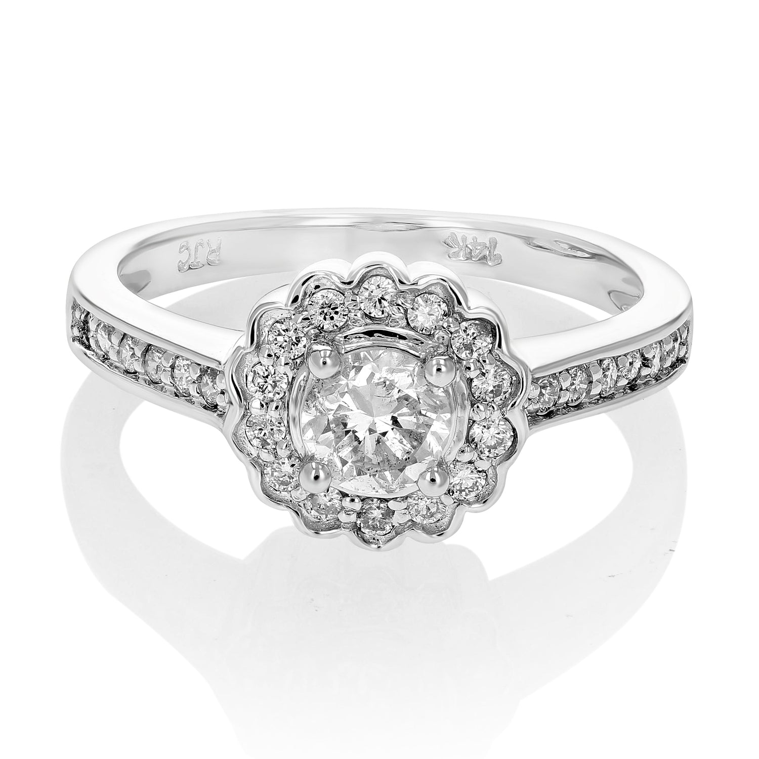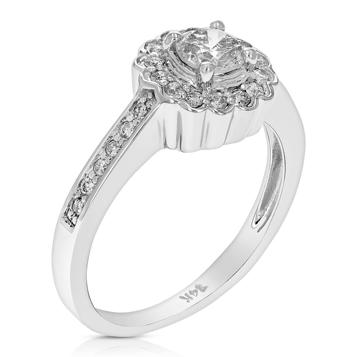 1 cttw Cluster Composite Diamond Engagement Ring 14K White Gold Round
