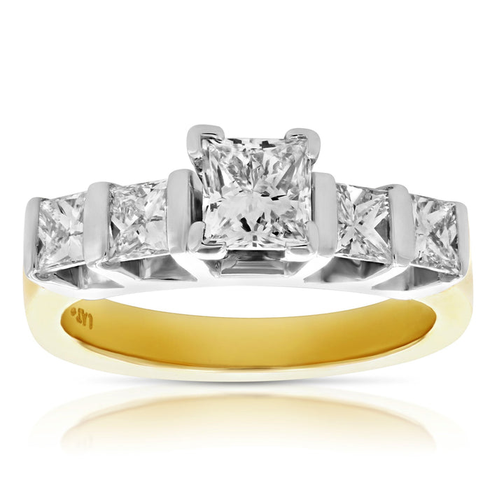 1.75 cttw SI1 5 Stone Princess Diamond Engagement Ring 14K Yellow Gold