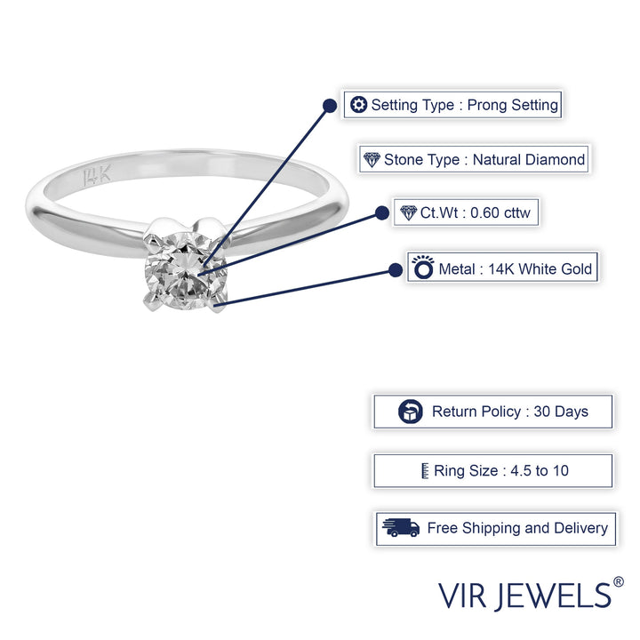 0.60 cttw SI2 H-I Diamond Solitaire Engagement Ring 14K White Gold Round