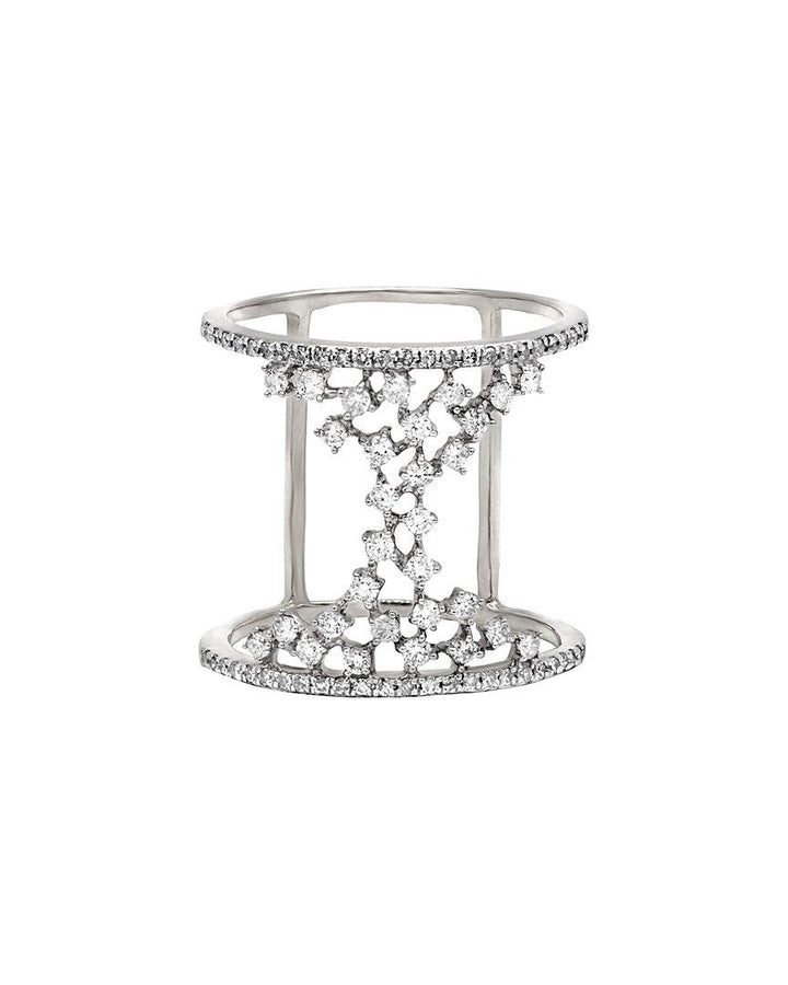 This 14K White Gold Multi-Stone Ring by Diana M features 0.38 ct. diamonds combined with 0.22 ct. SCD stones, set in a beautifully designed 78-stone arrangement. The contrast between the different types of stones creates an intriguing visual effect, making this ring an eye-catching addition to any collection. It’s perfect for those who appreciate intricate designs with a mix of sparkle and color. Ideal for both casual and formal occasions.