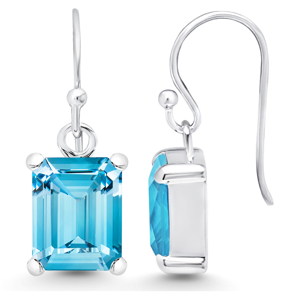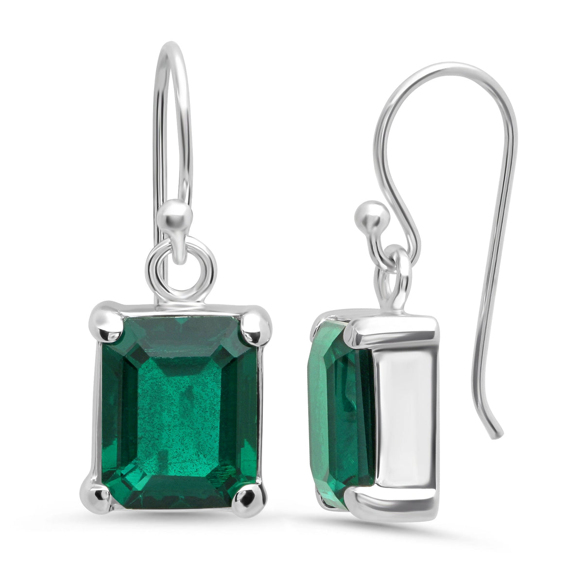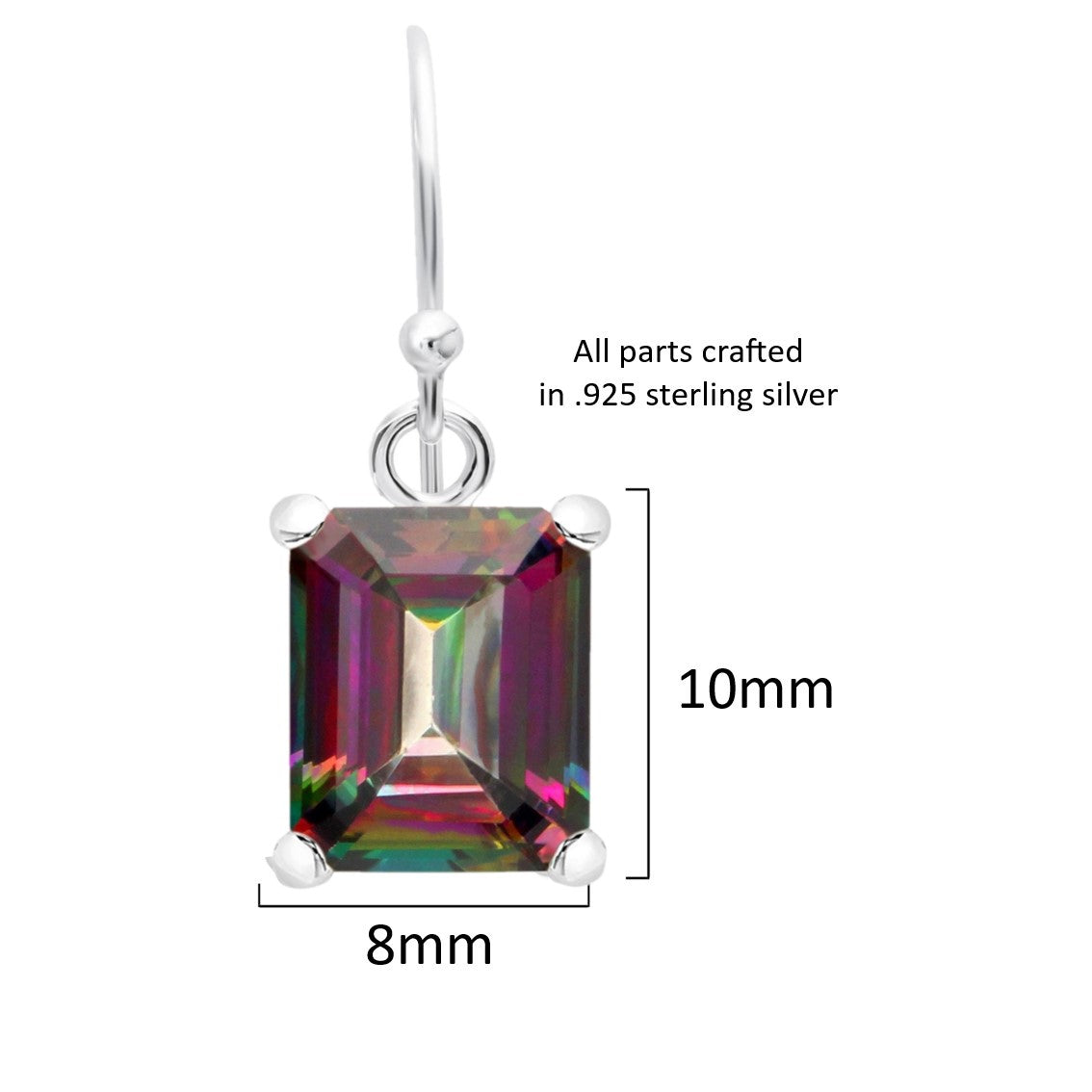 Sterling Silver 8x10 Emerald Cut Gemstone Earring