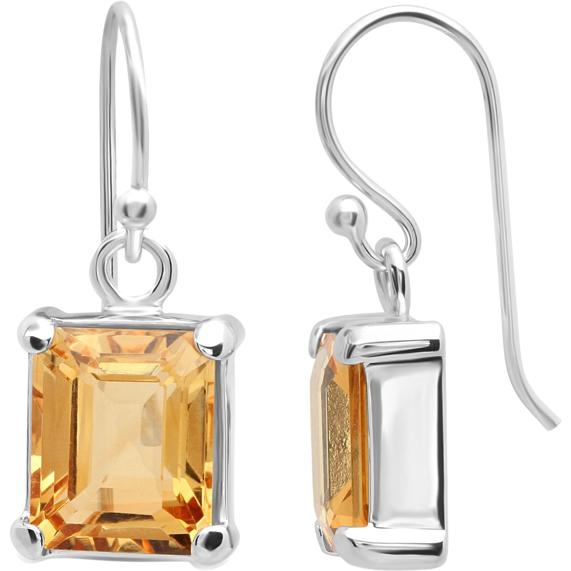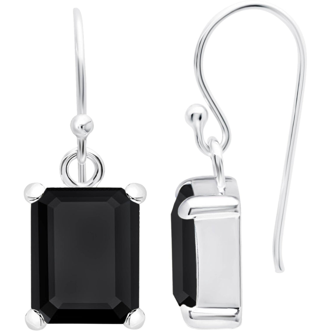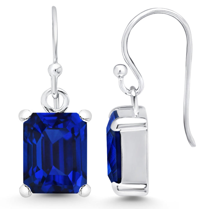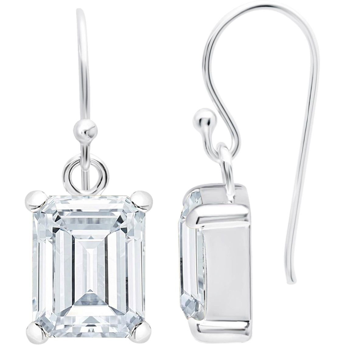 Sterling Silver 8x10 Emerald Cut Gemstone Earring