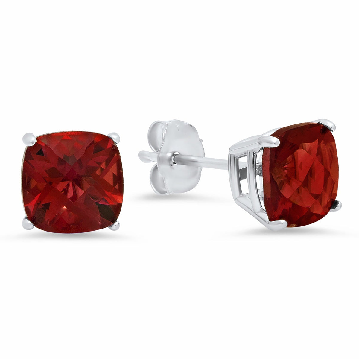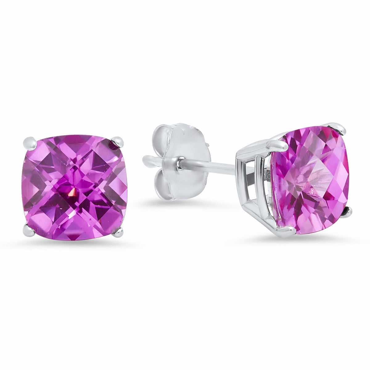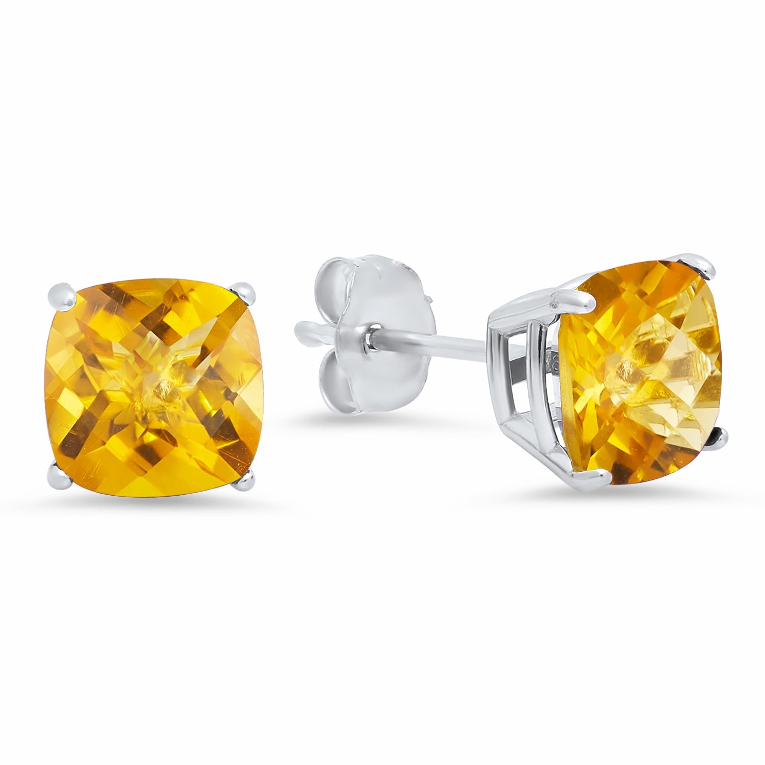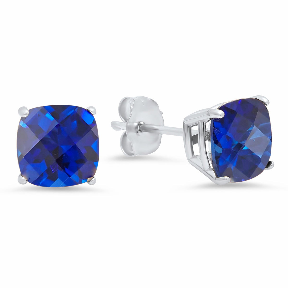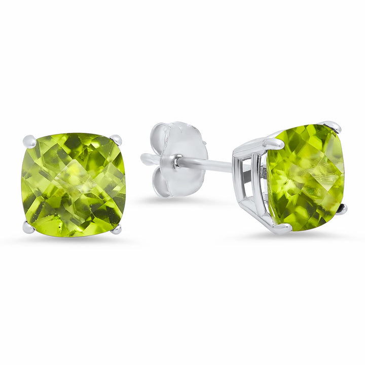 Sterling Silver Cushion-Cut Checkerboard Gemstone Stud Earrings (8MM)