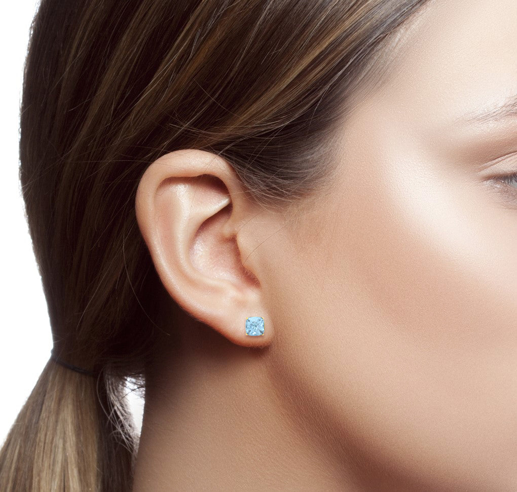 Handcrafted in sterling silver with 8mm cushion-cut aquamarine gemstones.