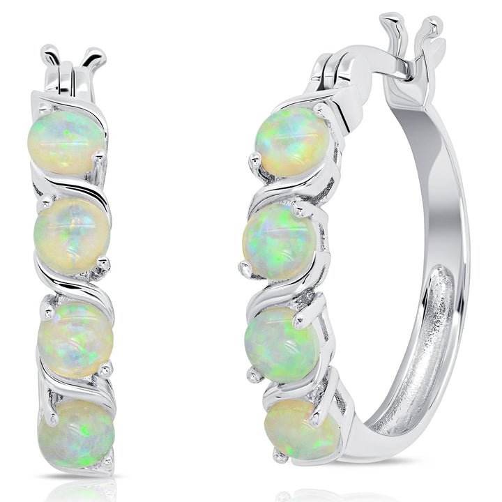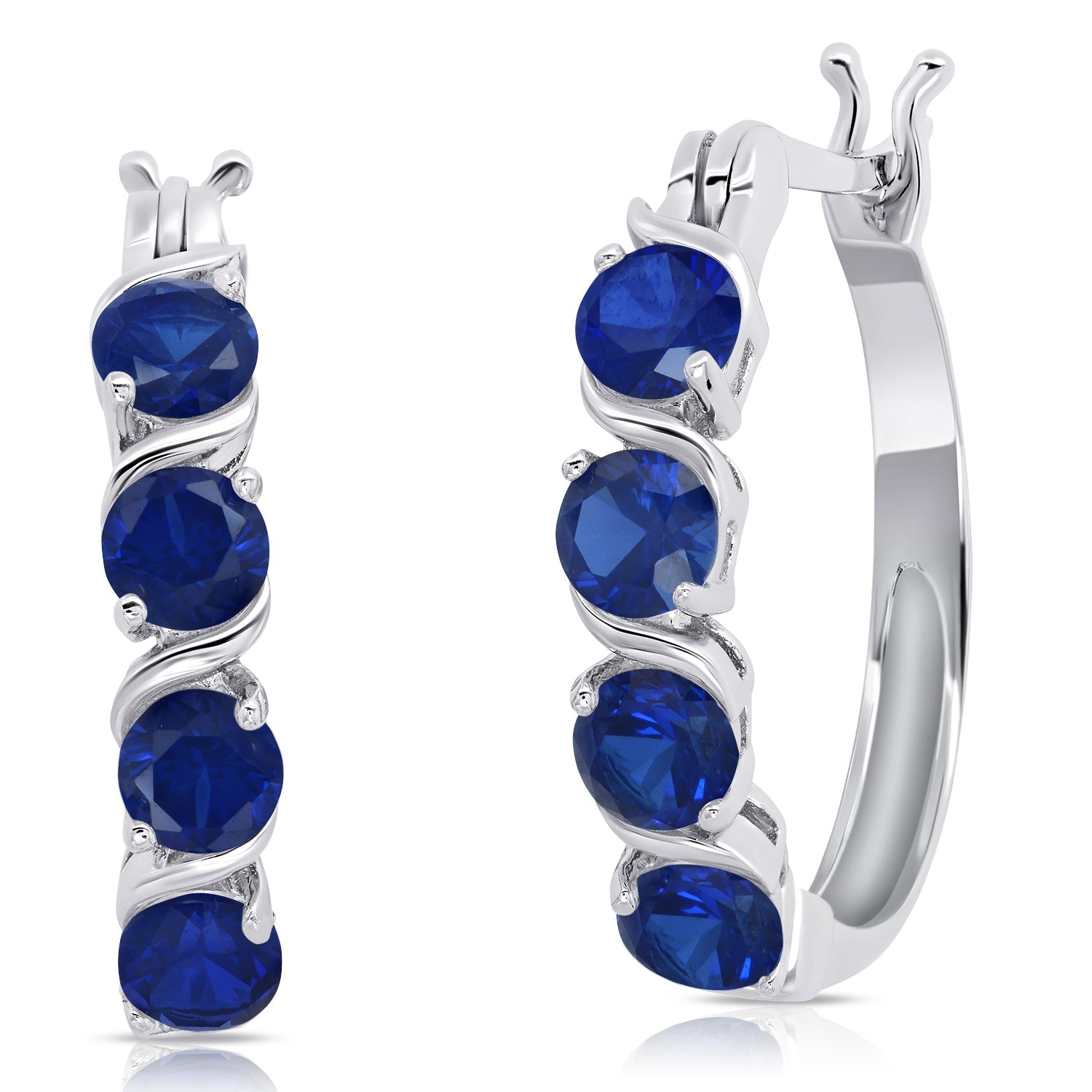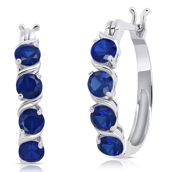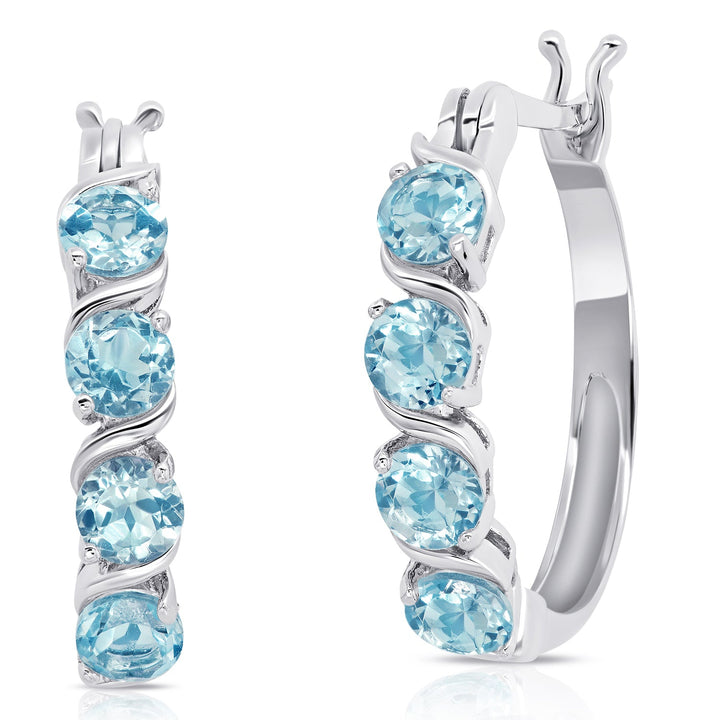 Round Gemstone Statement Hoop Earrings in Sterling Silver (0.9 inches)