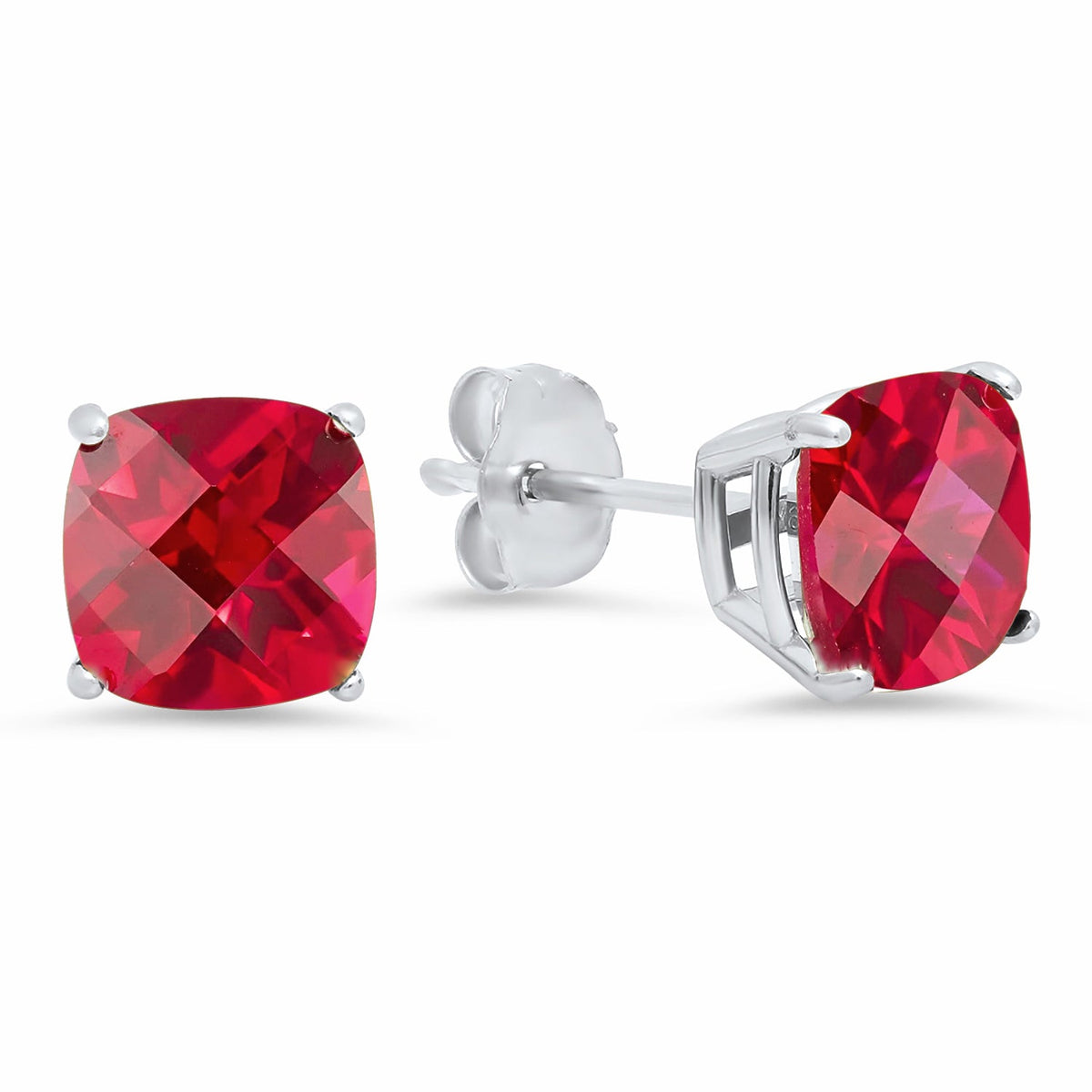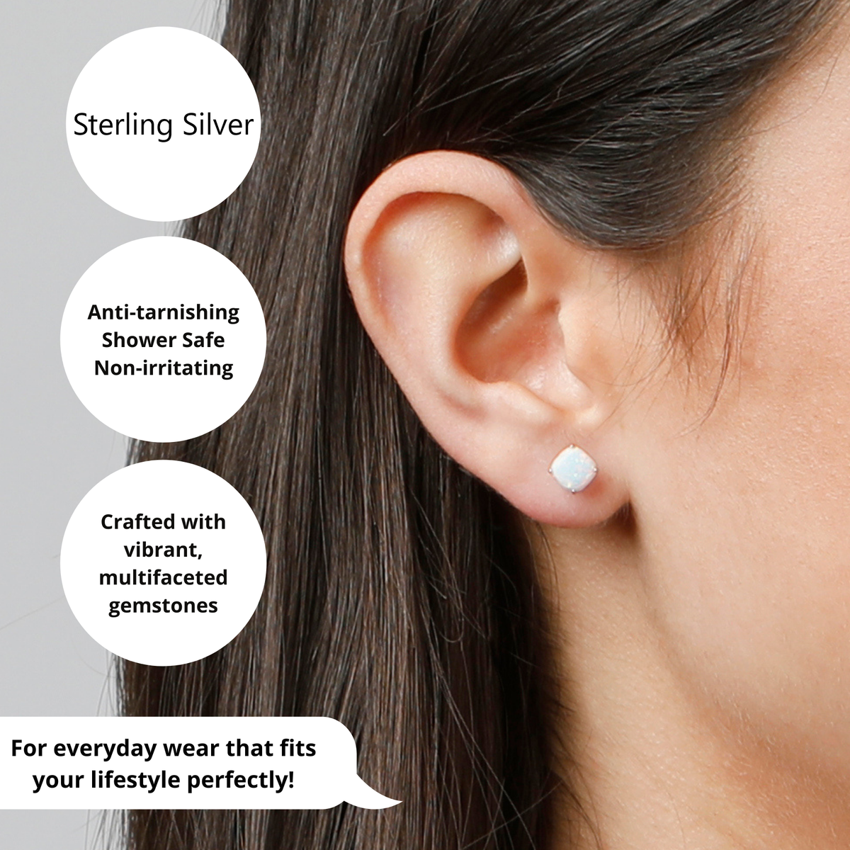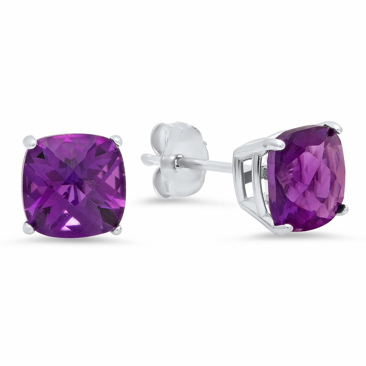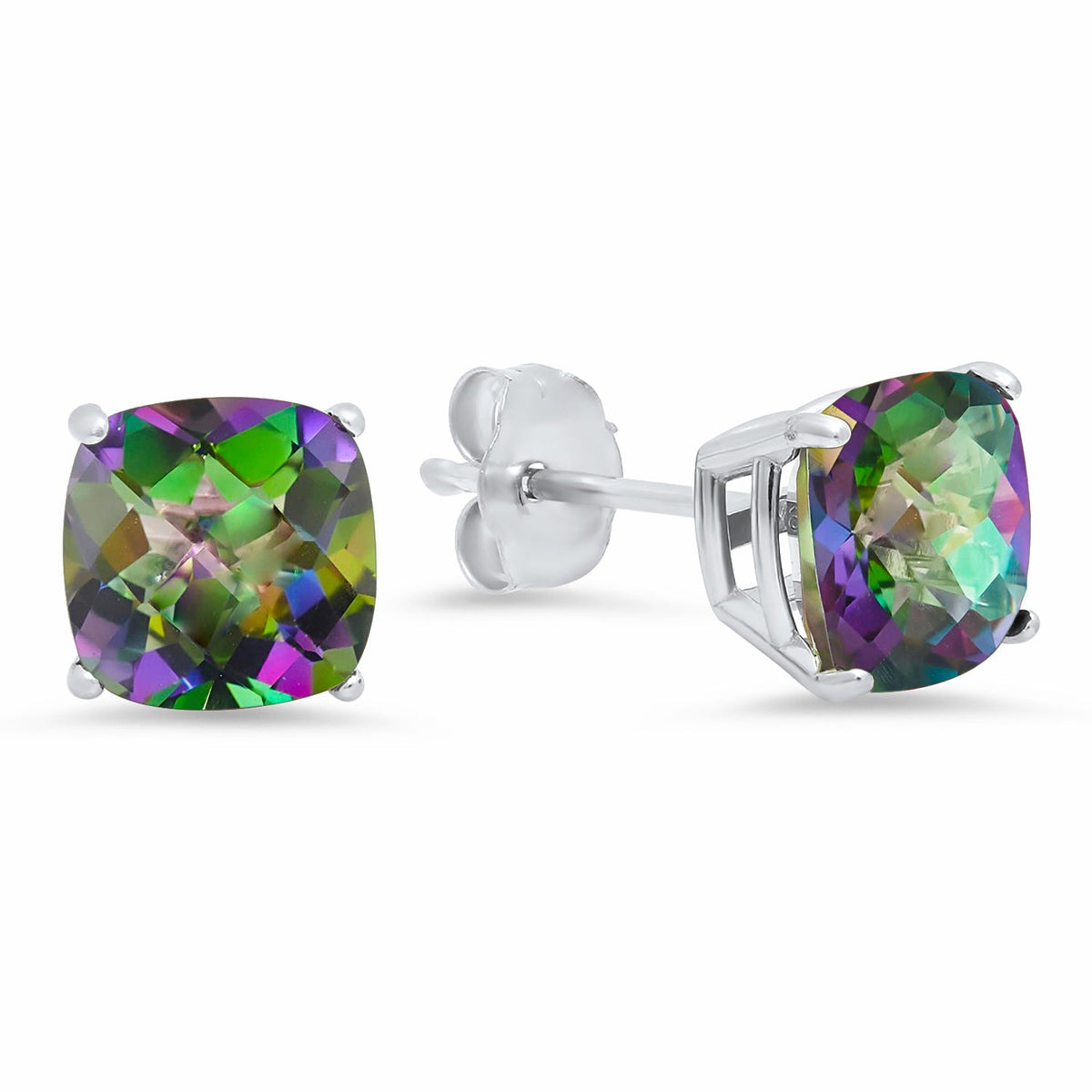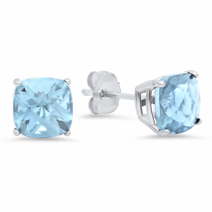 Sterling Silver 6MM Cushion Cut Checkerboard Gemstone Stud Earrings