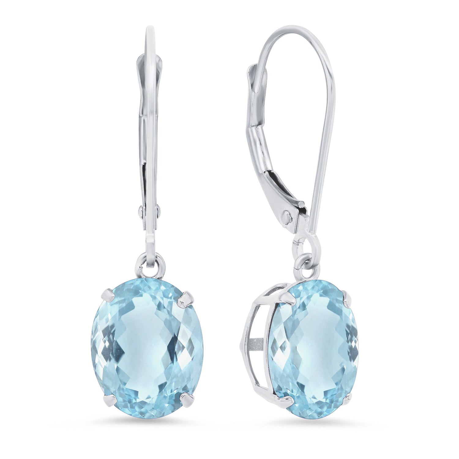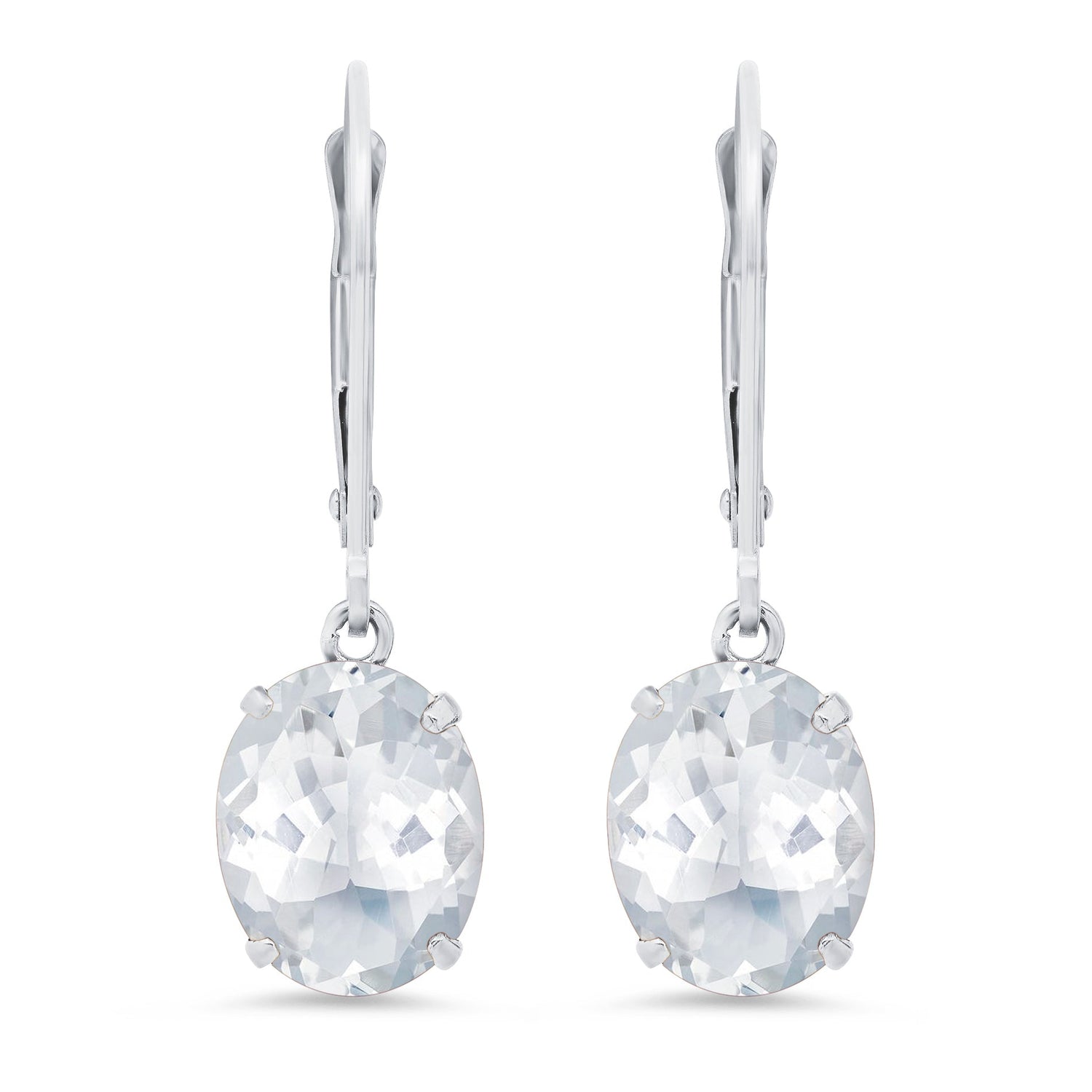 Handcrafted in 14k white gold with 8x10mm oval topaz gemstones. Each earring measures 1.5 inches in length.