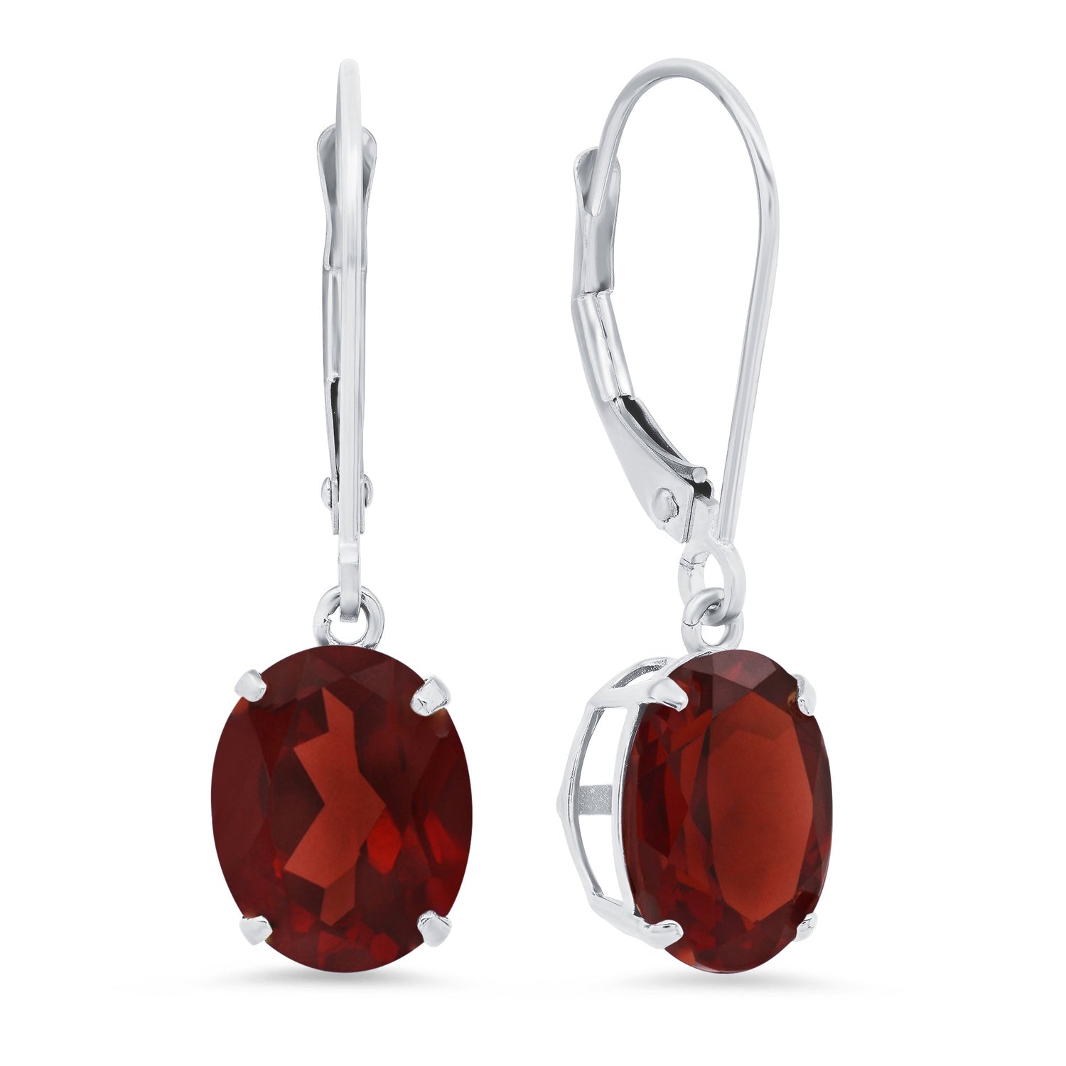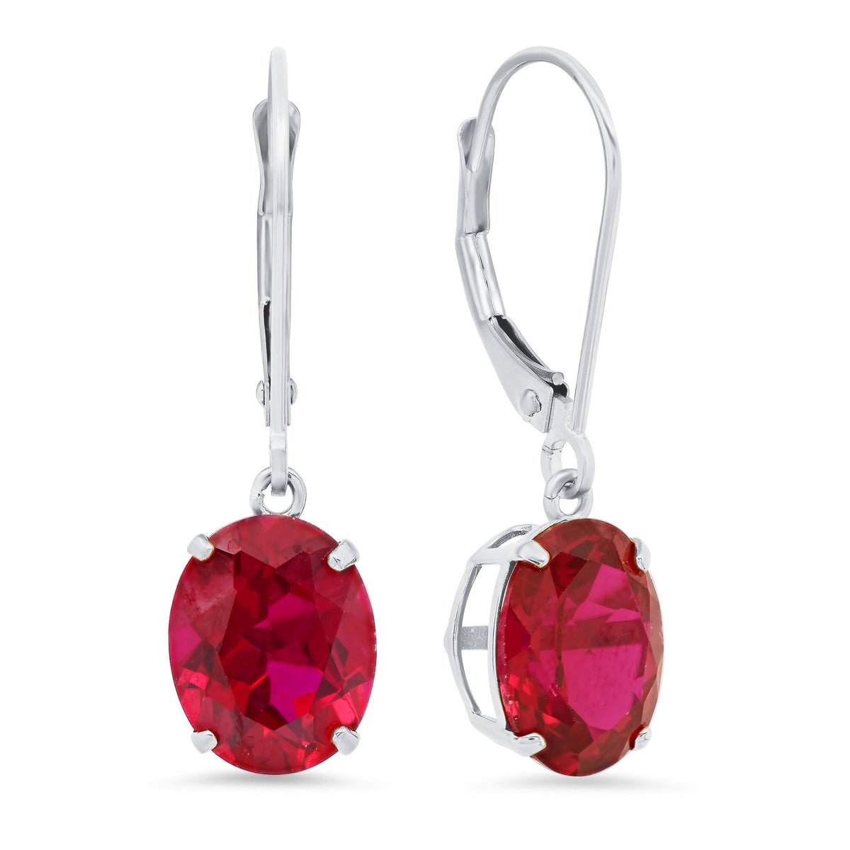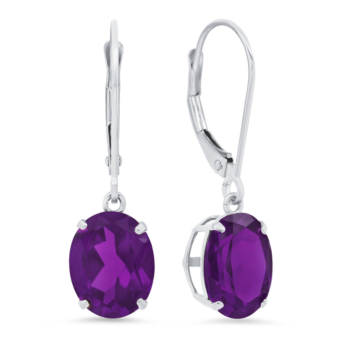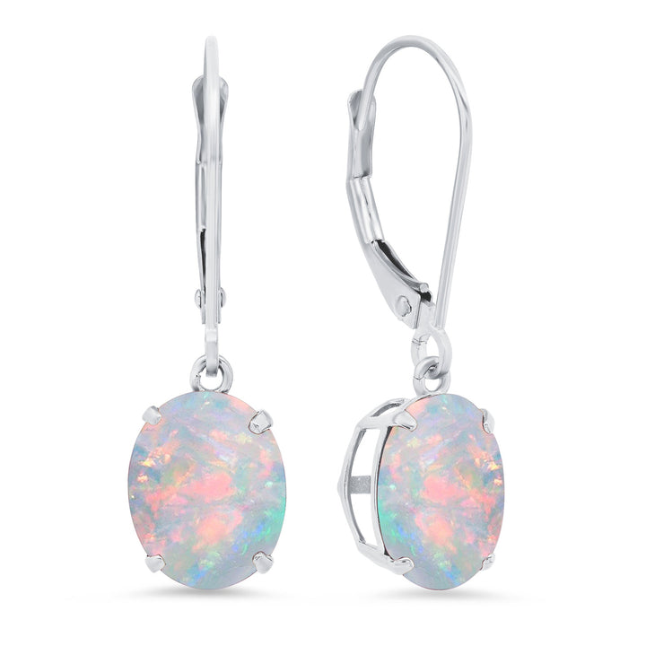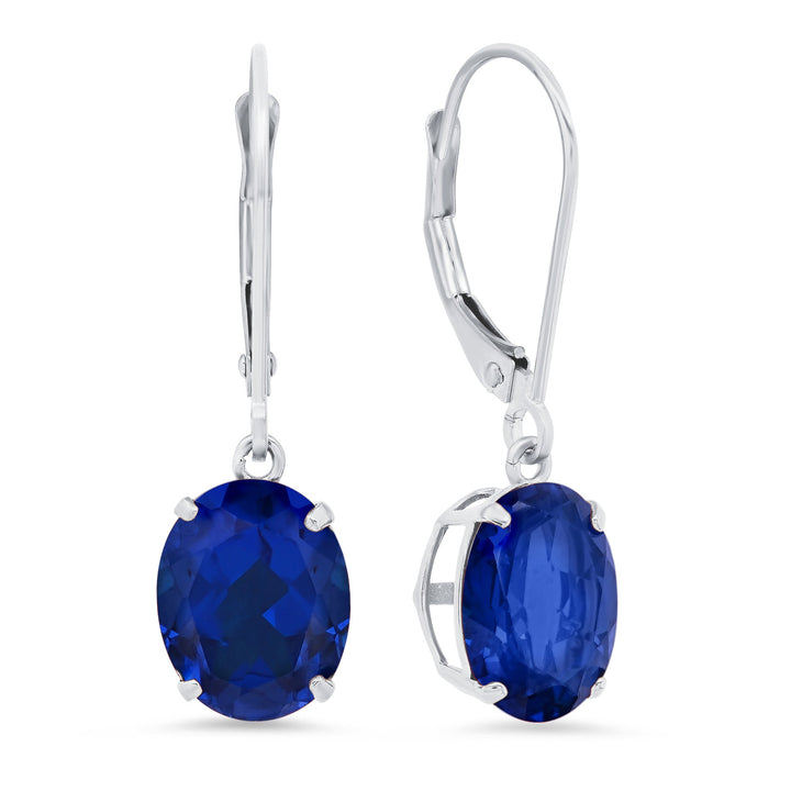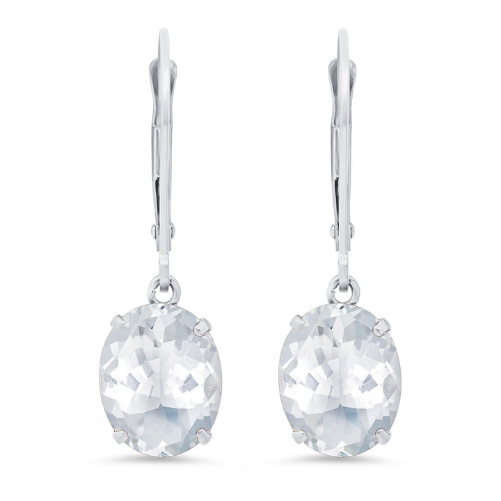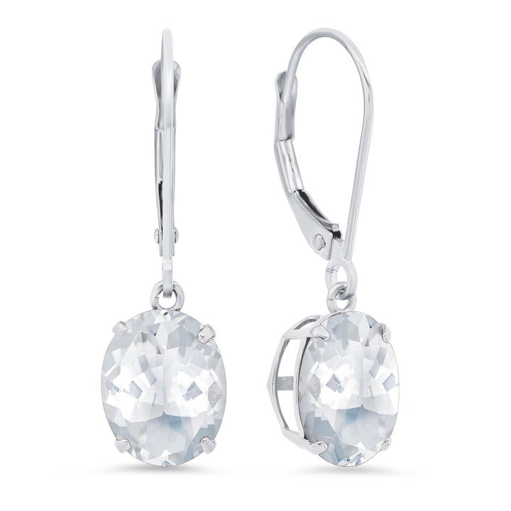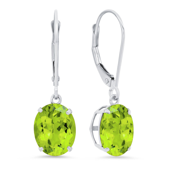 14K White Gold 8X10mm Oval Gemstone Dangle Earrings