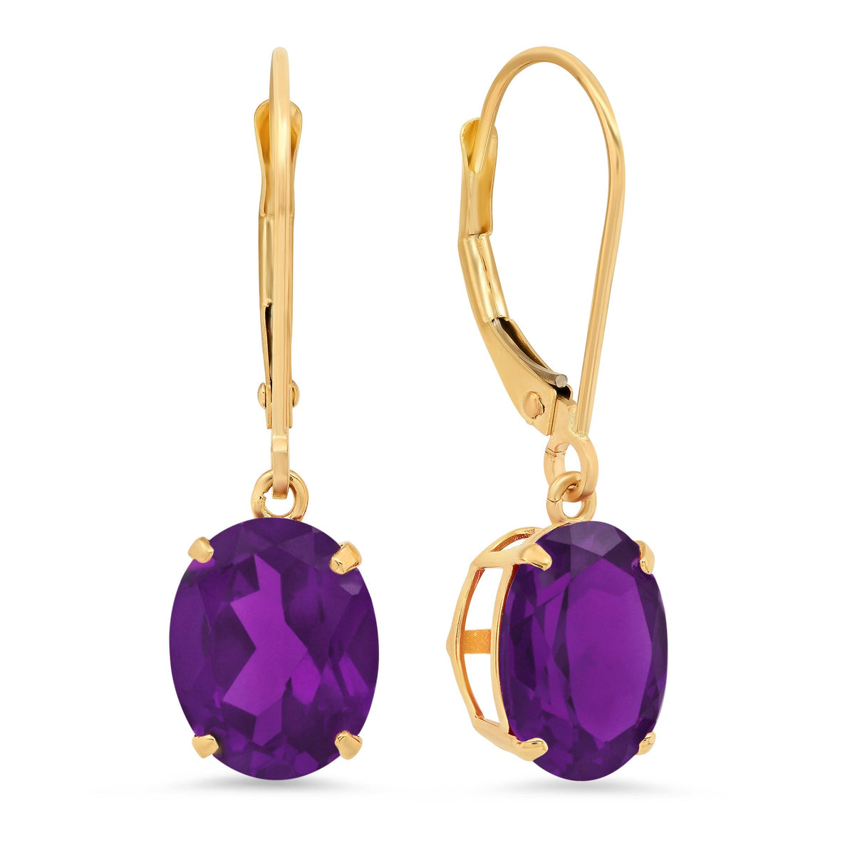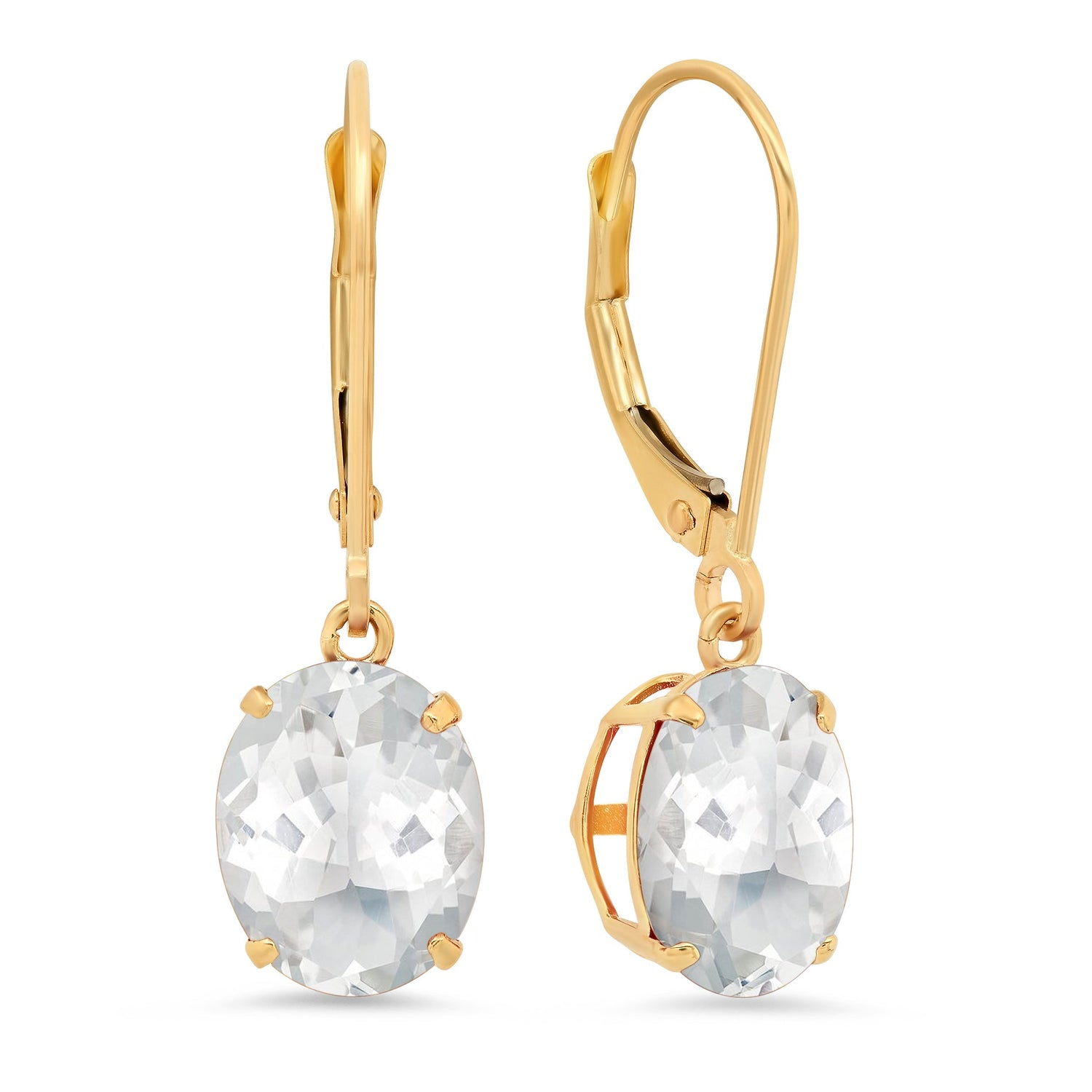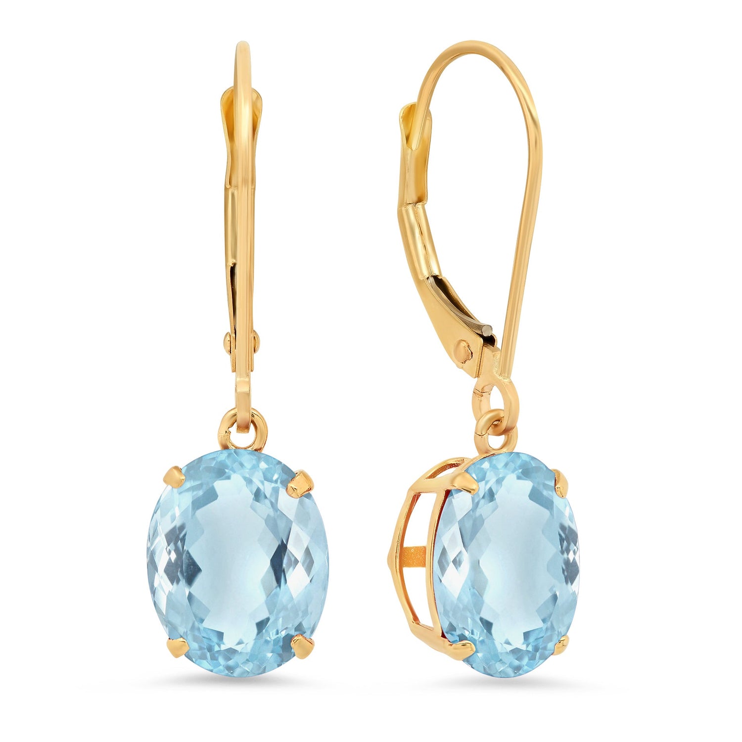 14K Yellow Gold 8X10mm Oval Gemstone Dangle Earrings