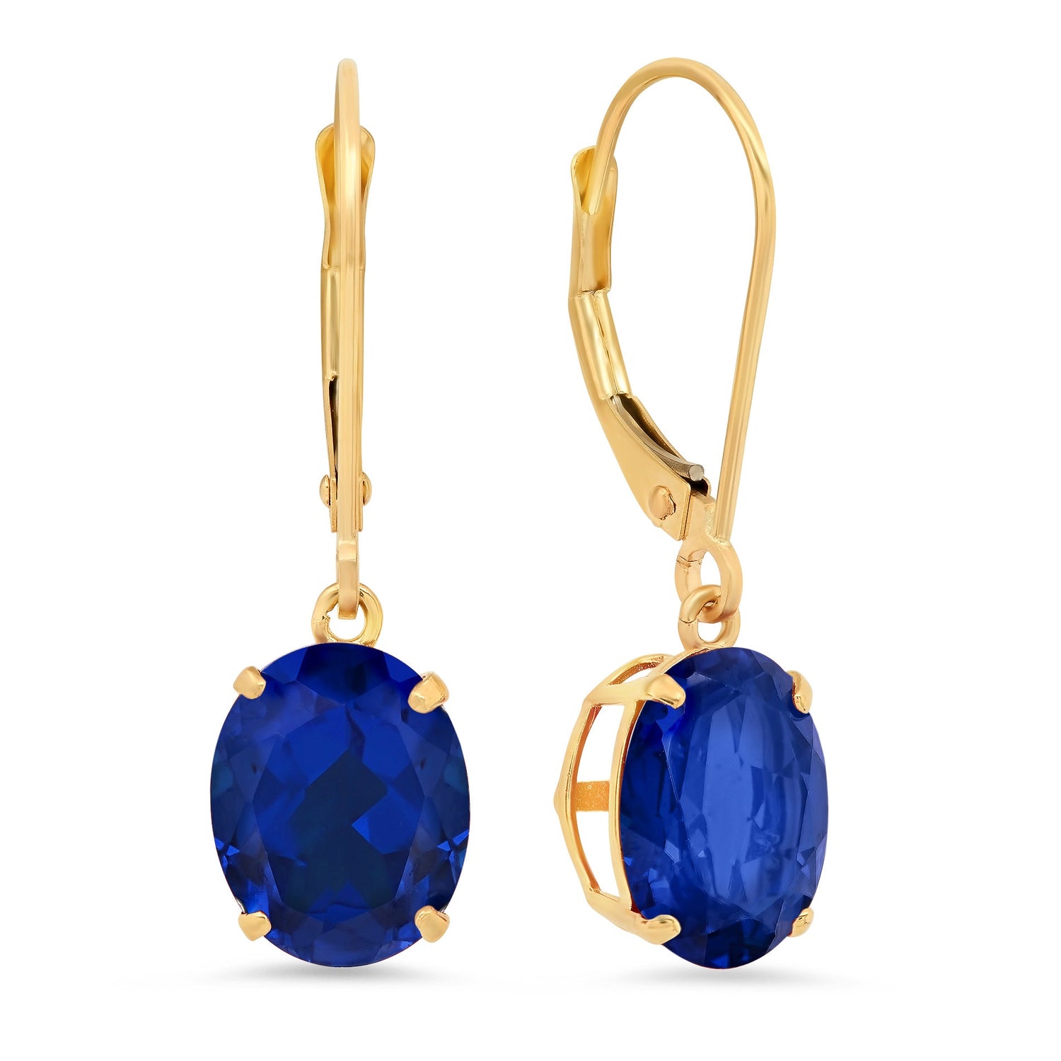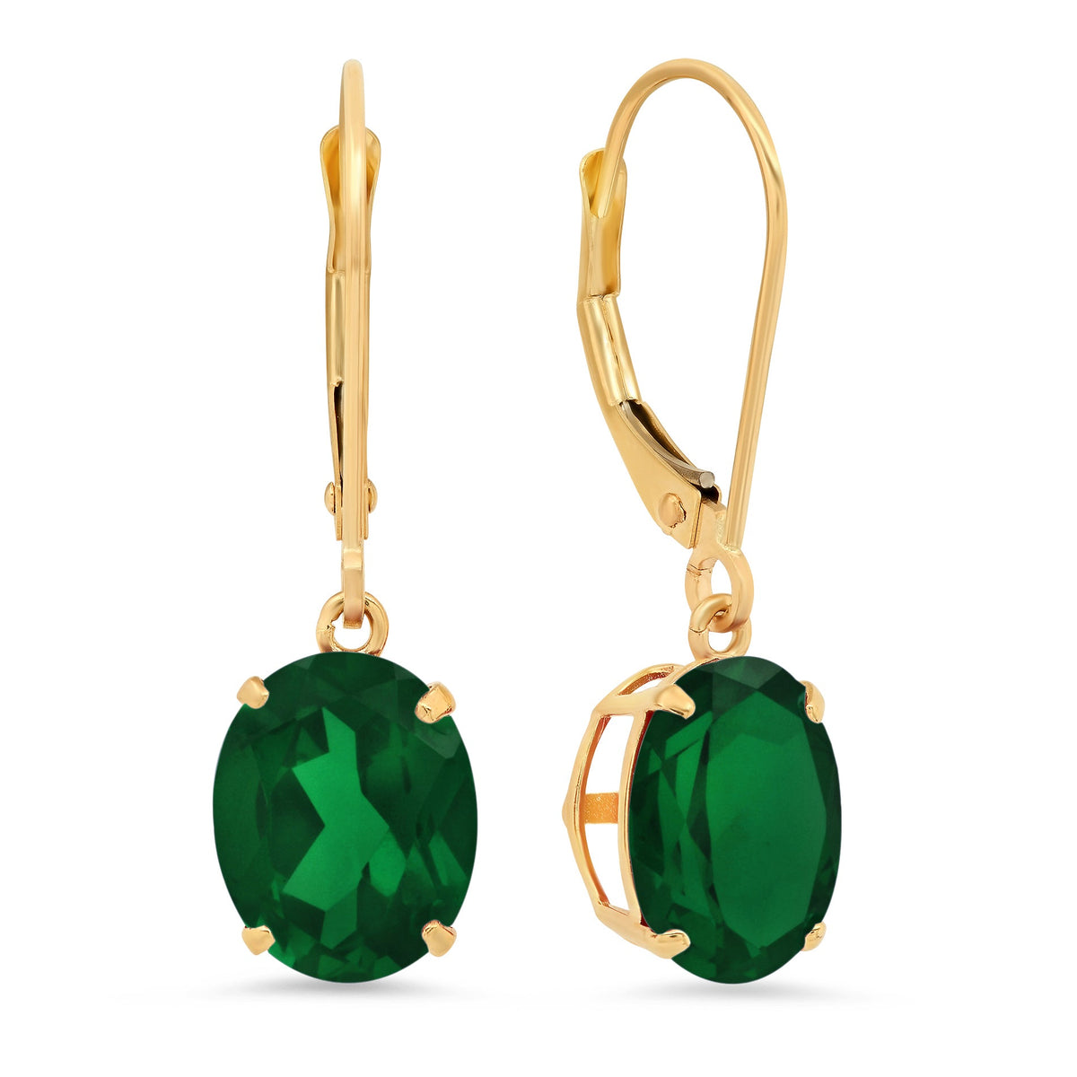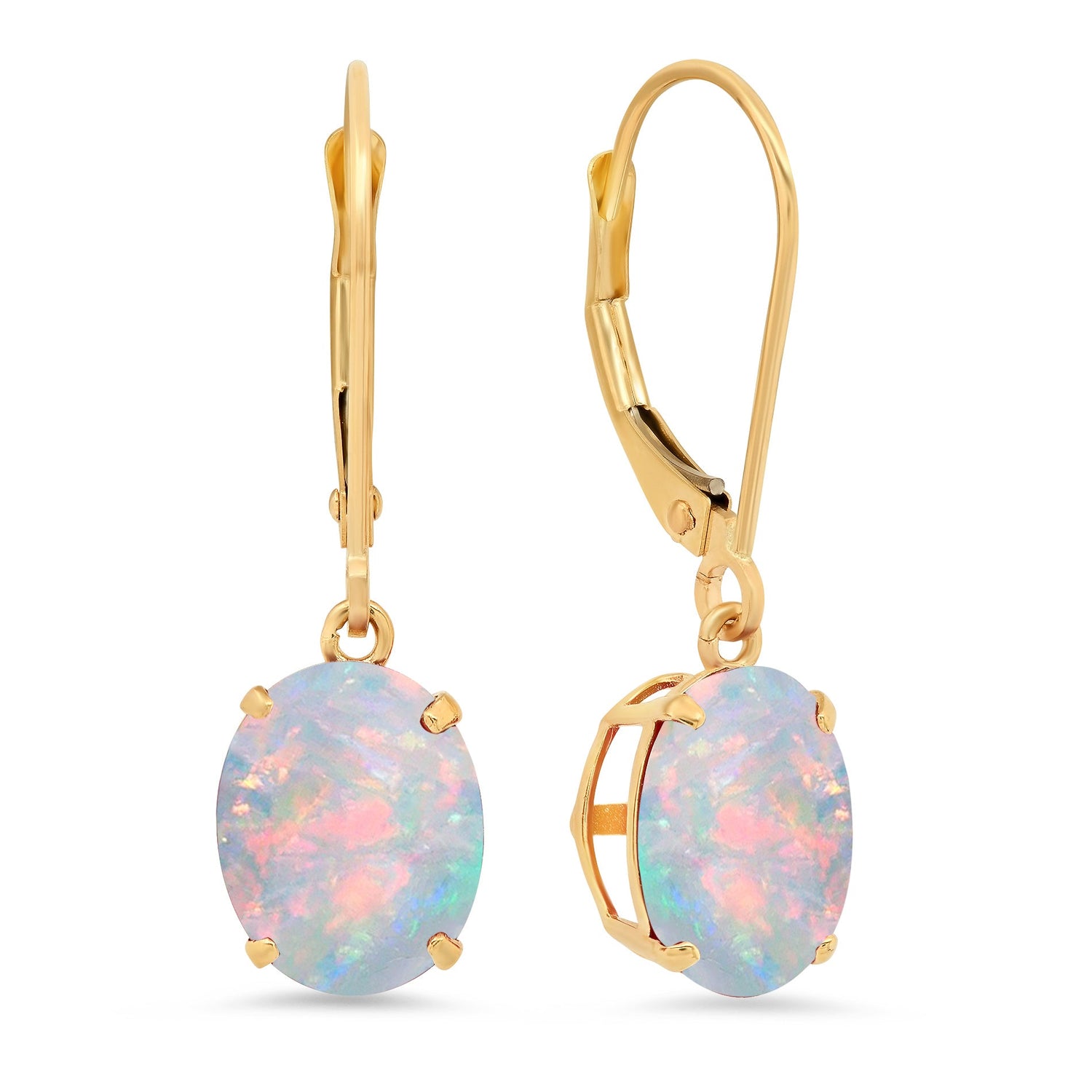 14K Yellow Gold 8X10mm Oval Gemstone Dangle Earrings