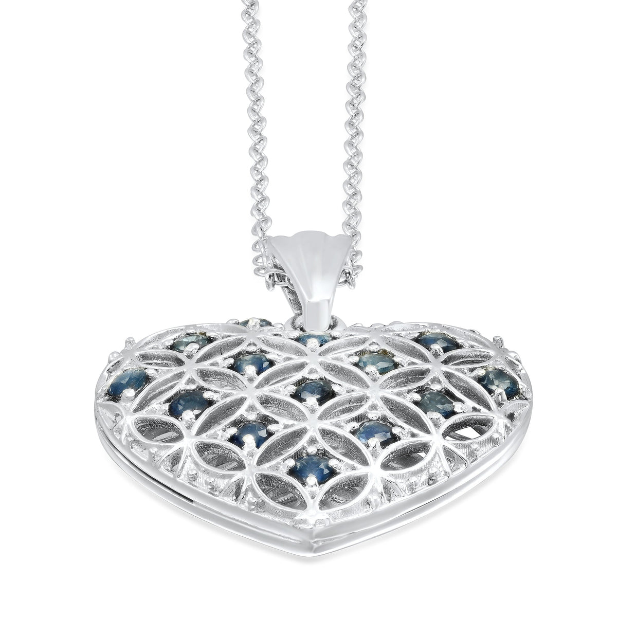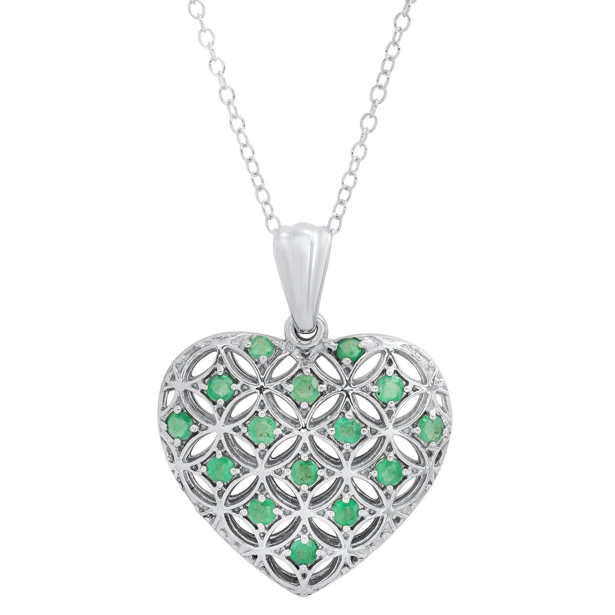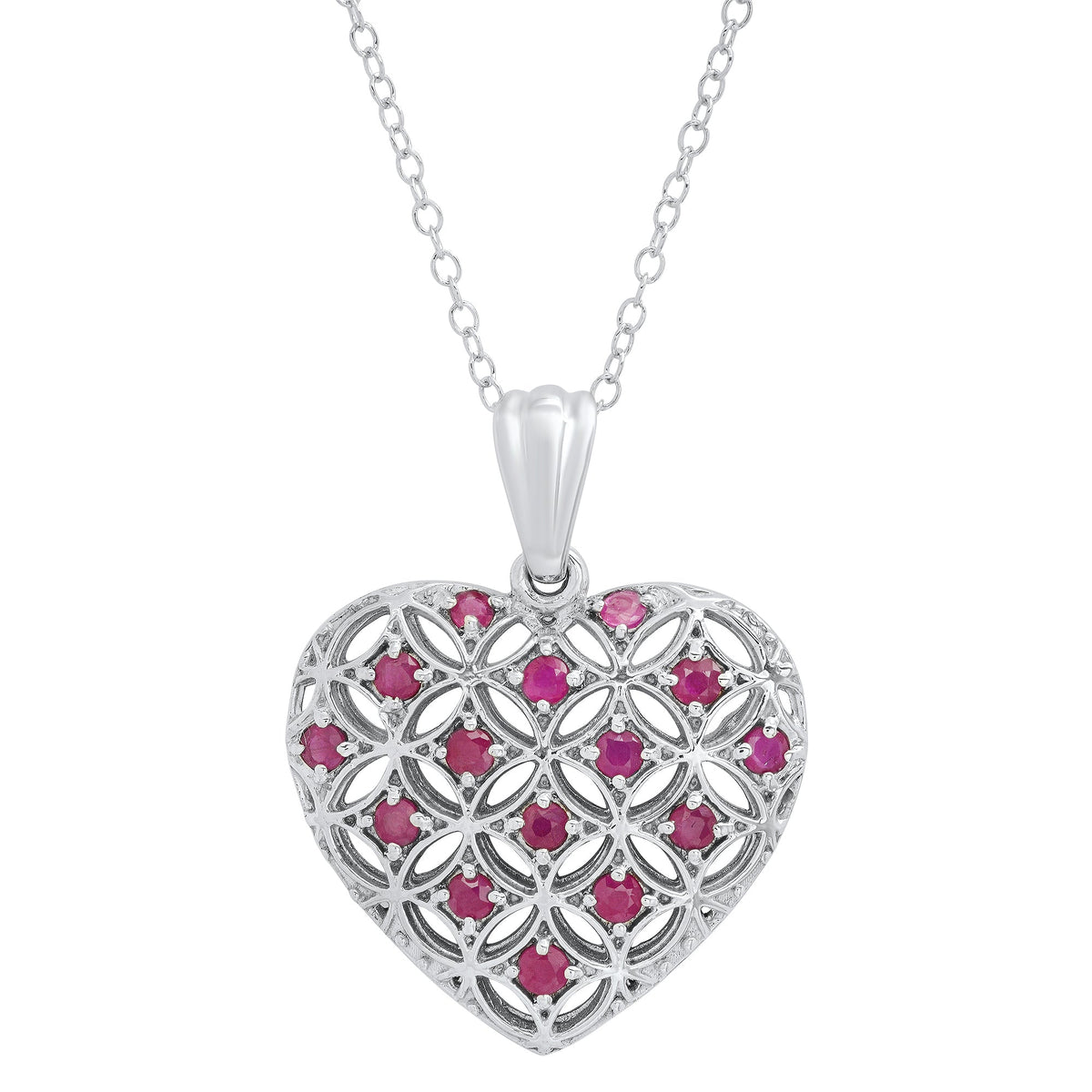 Sterling Silver Genuine Gemstone Heart Shape Filigree Pendant 18' in